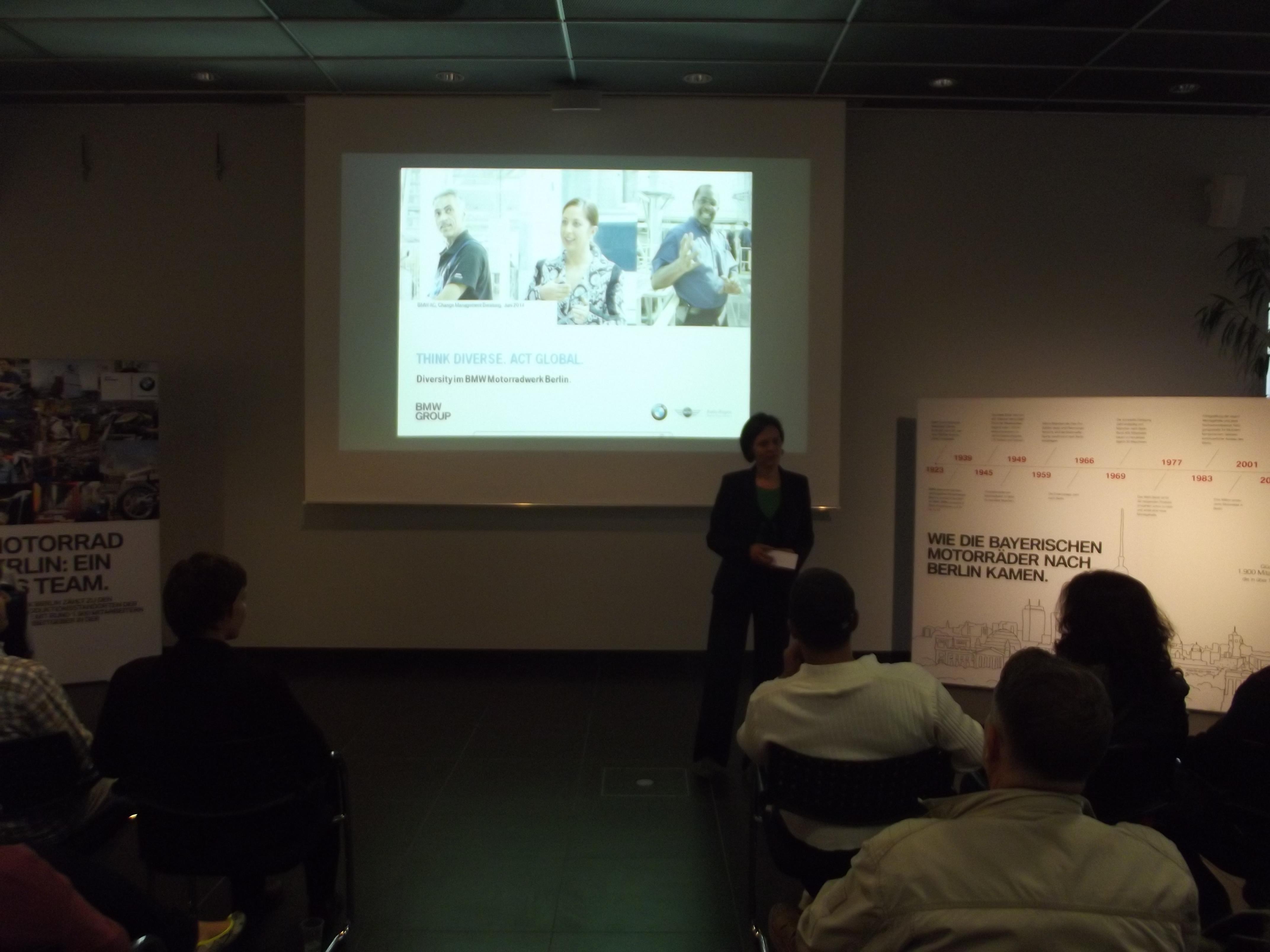 Am 24.6.2014 fand der Unternehmerabend im Spandauer Motorradwerk von BMW statt. Mit einem interessanten Vortrag und interaktiven Übungen stellte Frau Kempe das Diversitykonzept von BMW vor. BMW legt großen Wert darauf, die Arbeitsbedingungen für ältere ArbeitnehmerInnen zu optimieren. Im Anschluss an den Vortrag fand eine Werksbesichtigung statt, bei der interessante Einblicke ermöglicht wurden. Dabei konnte man erfahren, welche umfangreichen Maßnahmen im Werk umgesetzt wurden, um älteren Arbeitnehmern die bestmöglichen Arbeitsbedingungen zu bieten.