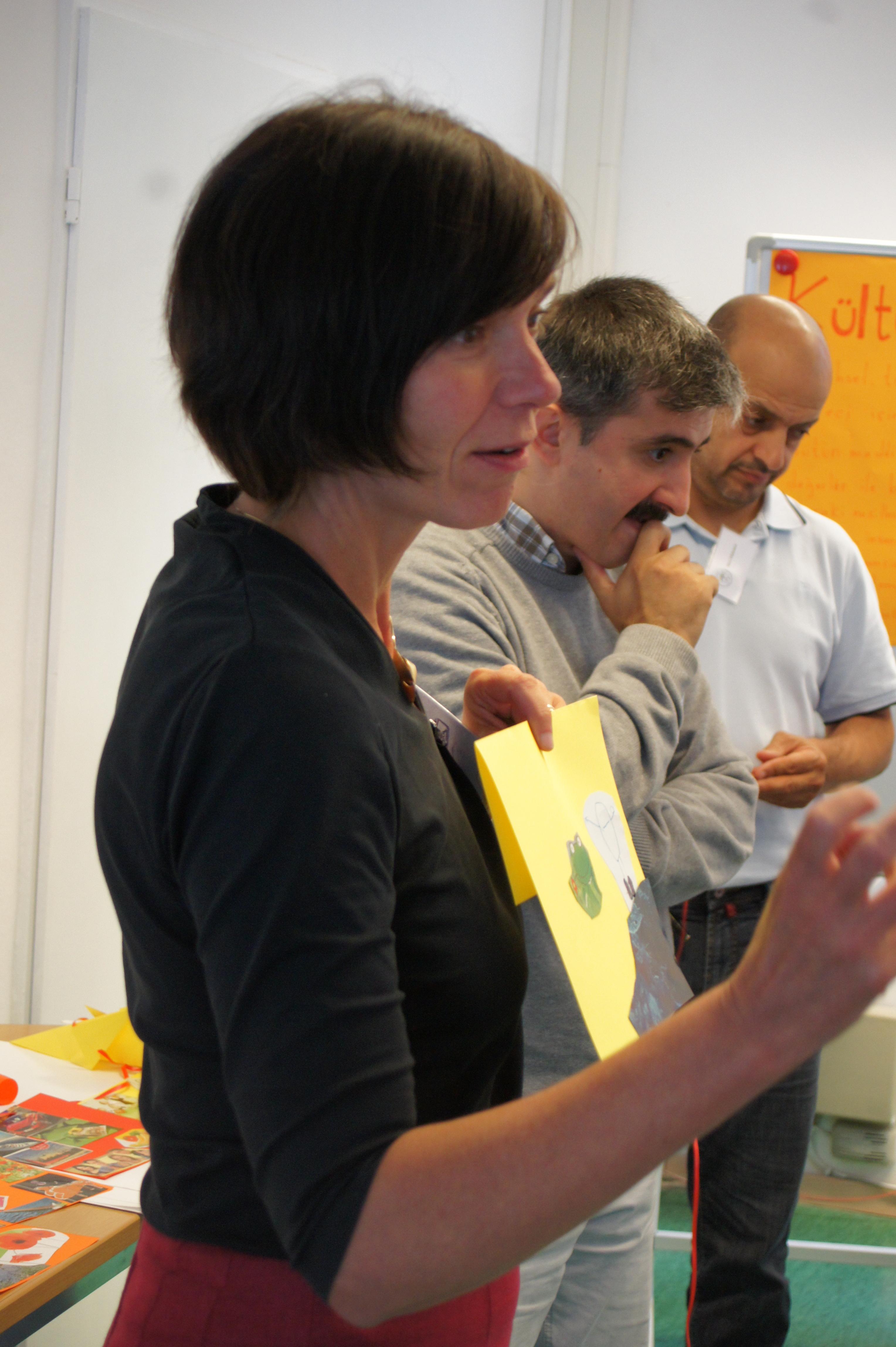 Die Projektmitarbeiterinnen und Projektmitarbeiter Frau Sevlakova, Frau Mytleyeyva, Frau Jerochim, Frau Dr. Skrobot, Herr Bozkurt, Herr Akpan, Herr Mohamed und Herr Demir unter der Leitung von Frau Dr. Marschke sowie dem Jobcoach Herrn Ivic stellten sich den Anwesenden vor. Im Anschluss arbeiteten die Anwesenden gemeinsam an den verschiedenen persönlichen Einsichten ihrer Kultur. Zum Abschluss wurden die Arbeiten gegenseitig präsentiert.