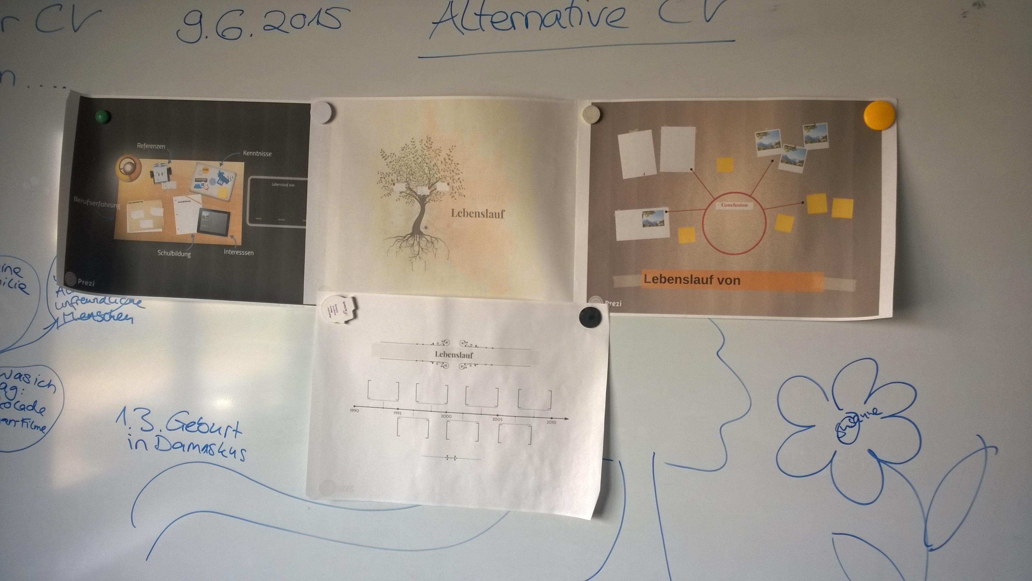Die Teilnehmer*innen waren sehr kreativ und einige Lebensläufe sind schon fertig. Ziel ist es, beim nächsten Workshop alle alternativen Lebensläufe fertigzustellen.