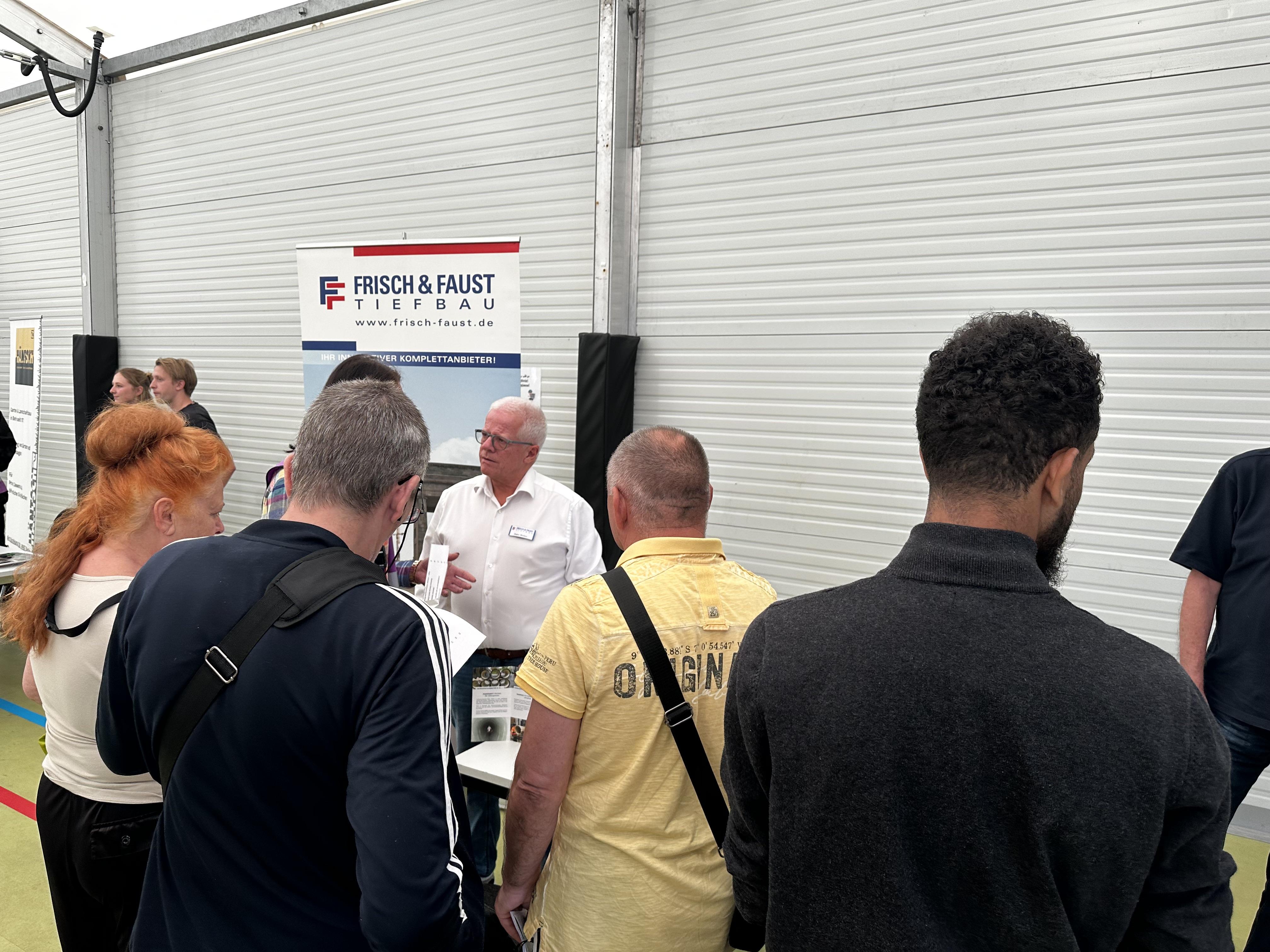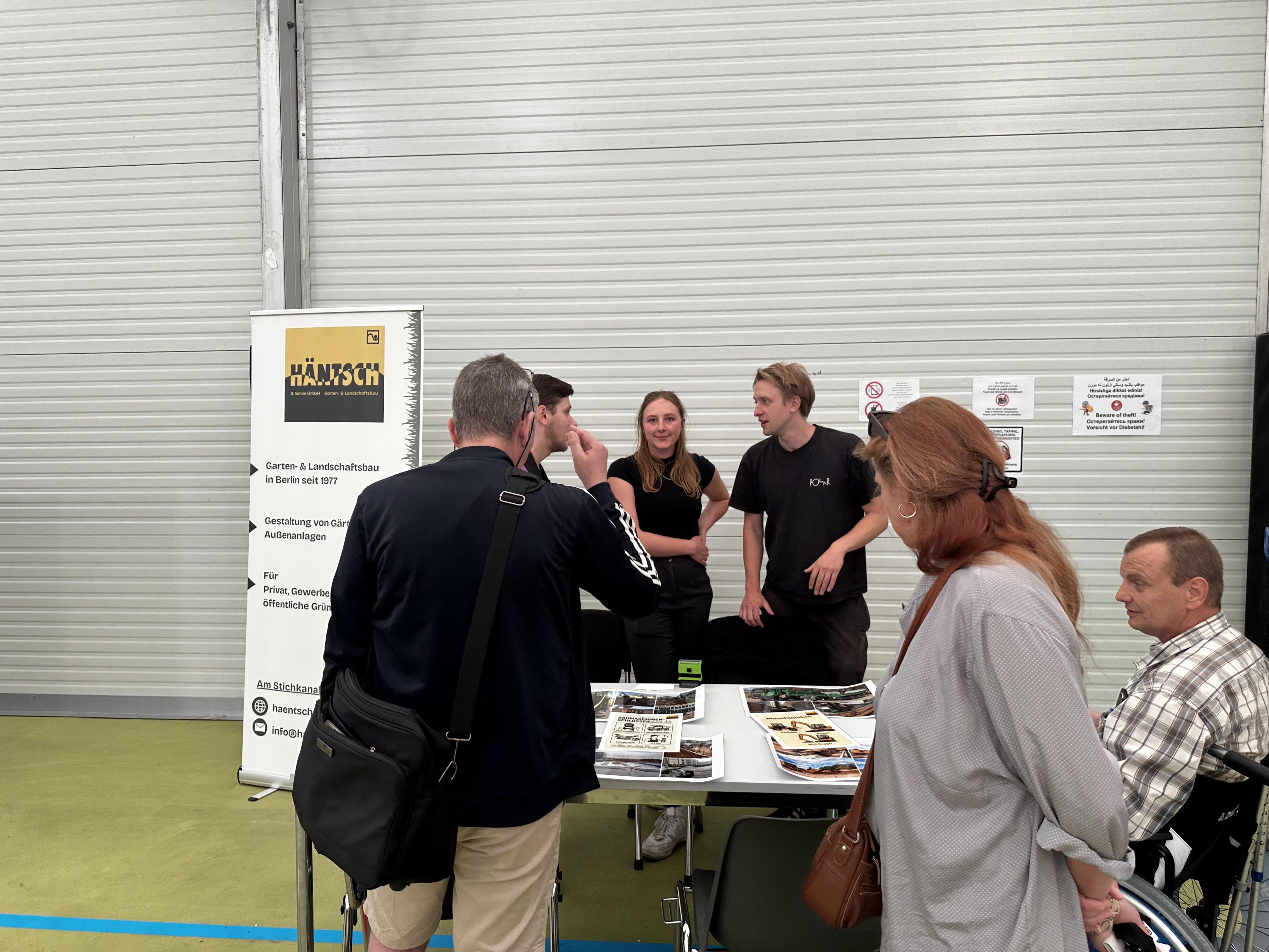 Vor Ort präsentierten sich 20 Aussteller*innen aus verschiedenen Branchen – darunter Unternehmen aus den Bereichen Tiefbau, Garten- und Landschafts- bau, Gebäudemanagement, Umwelttechnik, Energie und Personaldienst- leistungen. Neben Arbeitgebern waren auch zahlreiche Beratungs- und Qualifizierungs- angebote vertreten: Unter anderem das bridge Netzwerk mit seinen Trägern Zentrum ÜBERLEBEN gGmbH und GFBM, der Arbeitgeberservice der Agentur für Arbeit Berlin Süd, das Jobcenter Spandau, das Projekt „Fahrplan Anerkennung beruflicher Abschlüsse Plus“ (Club Dialog e. V.) sowie das RIN-Projekt Business Chances Berlin (Club Dialog e.V.), das Bundesamt für Migration und Flüchtlinge (BAMF) mit Informationen zu Integrations- und Berufssprachkursen sowie BEMA – Berliner Beratungszentrum für Migration und Gute Arbeit (Arbeit und Leben Berlin-Brandenburg gGmbH). Rund 250 Besucher*innen nahmen an der Jobbörse teil.