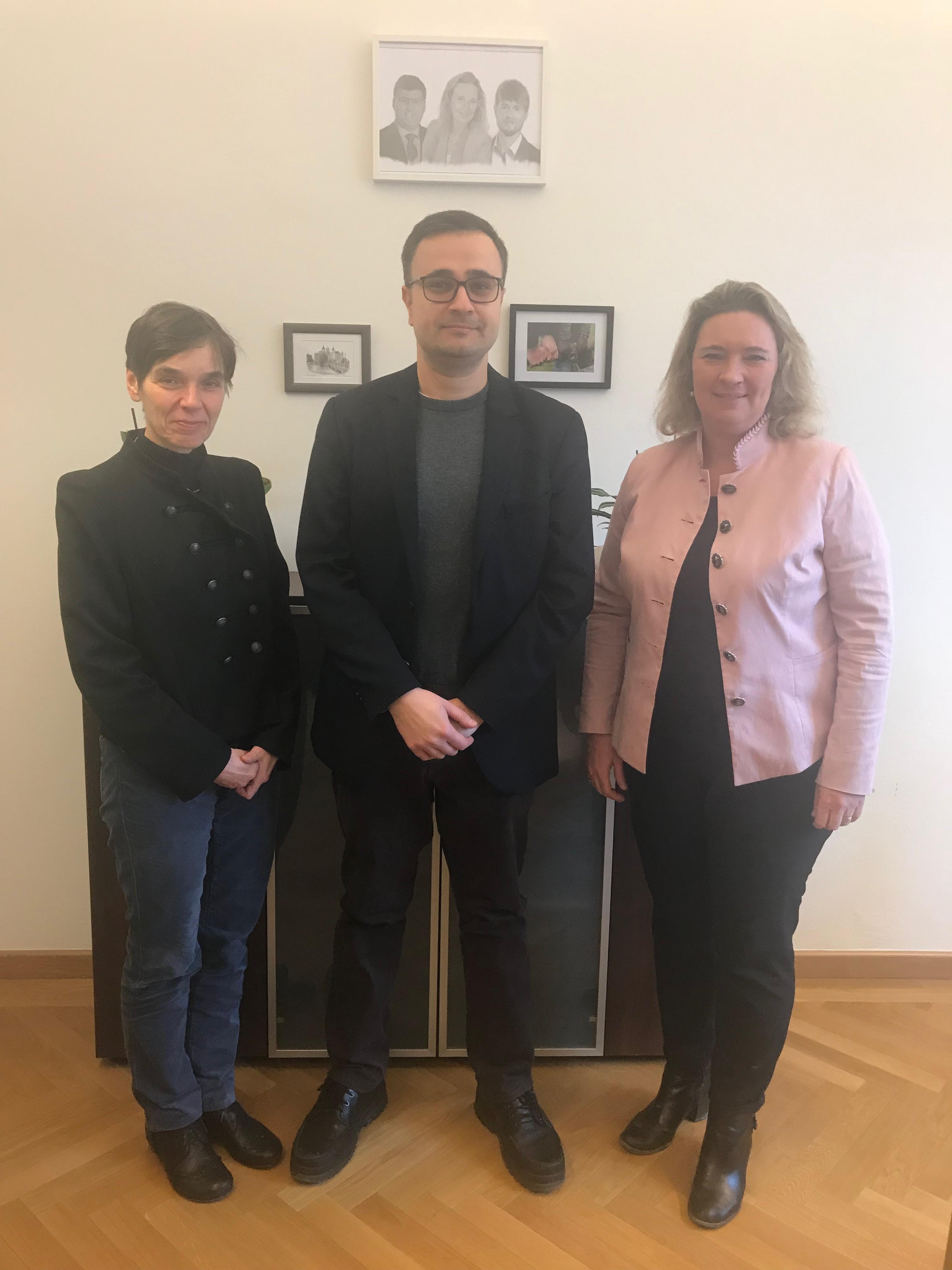 Am 27.Februar besuchte Özcan Kalkan, Regionalkoordinator Süd, gemeinsam mit der Projektleitung des Projekts ABCami, Dr. Britta Marschke, die Integrationsbeauftragte der Bayerischen Staatsregierung und Mitglied des Landtags, Kerstin Schreyer (MdL), in der bayerischen Landeshauptstadt. Nach Vorstellung des Projekts erfolgte ein reger Austausch über die Bedeutung von Integrations- und Bildungsprojekten wie ABCami für die erfolgreiche Integration von Migrant*innen und Geflüchteten in die deutsche Gesellschaft. Zudem gab uns Kerstin Schreyer wichtige Tipps bezüglich neuer Partner und Standorte für unsere ABCami-Alphabetisierungskurse im Freistaat. Wir danken der bayerischen Integrationsbeauftragten für das Interesse an unserer Arbeit und ihre Unterstützung!