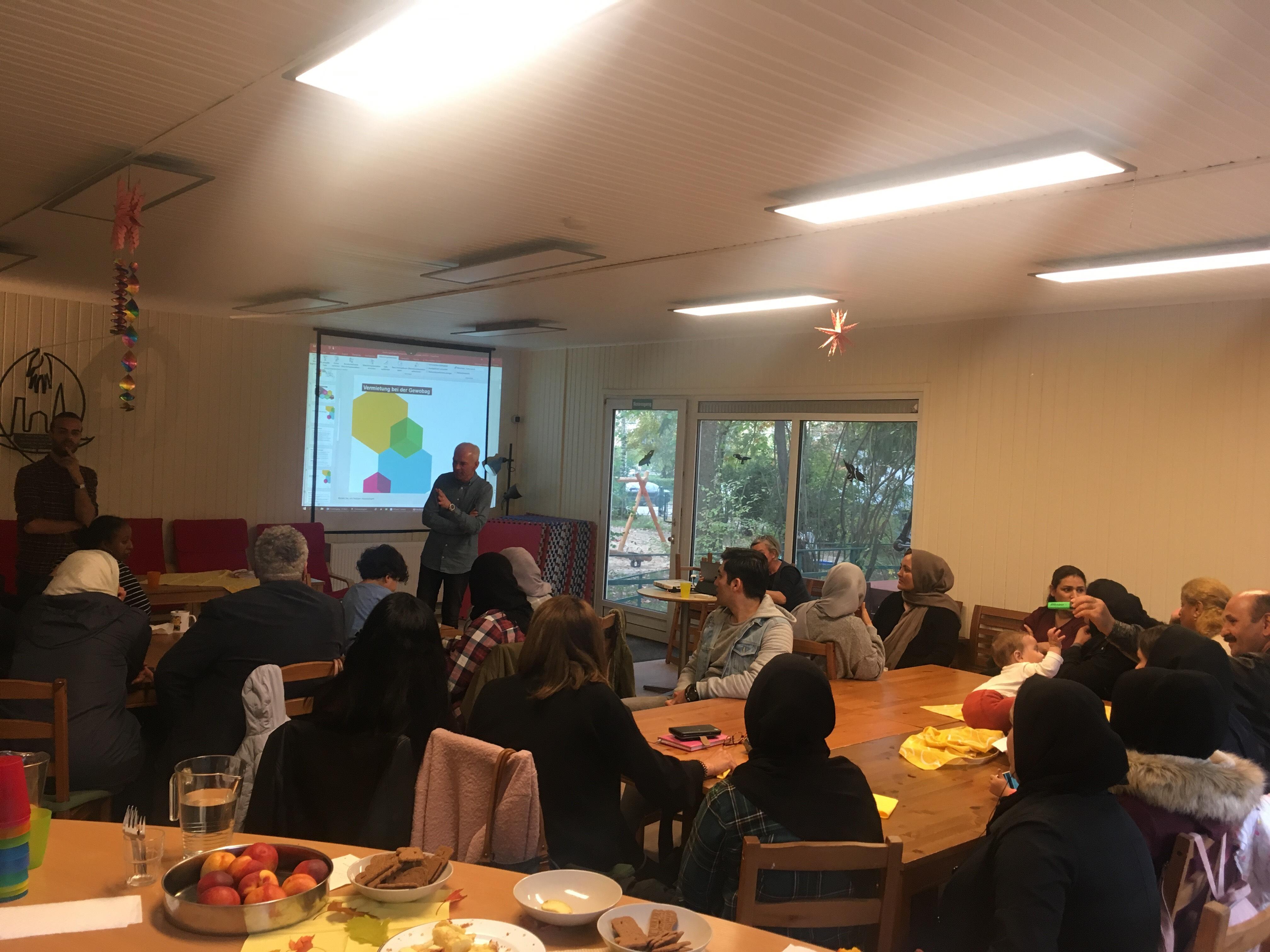 Der Besuch der GEWOBAG beendete die achtwöchige Vortragsreihe im Falkenhagener Feld. Diese Woche am 14. Oktober begann bereits der vierte Durchlauf des Projekts. Bis Ende des Jahres werden wöchentlich Schulungen zum Thema Wohnen in den Gemeinschaftsunterkünften Rohrdamm sowie Am Oberhafen gehalten.