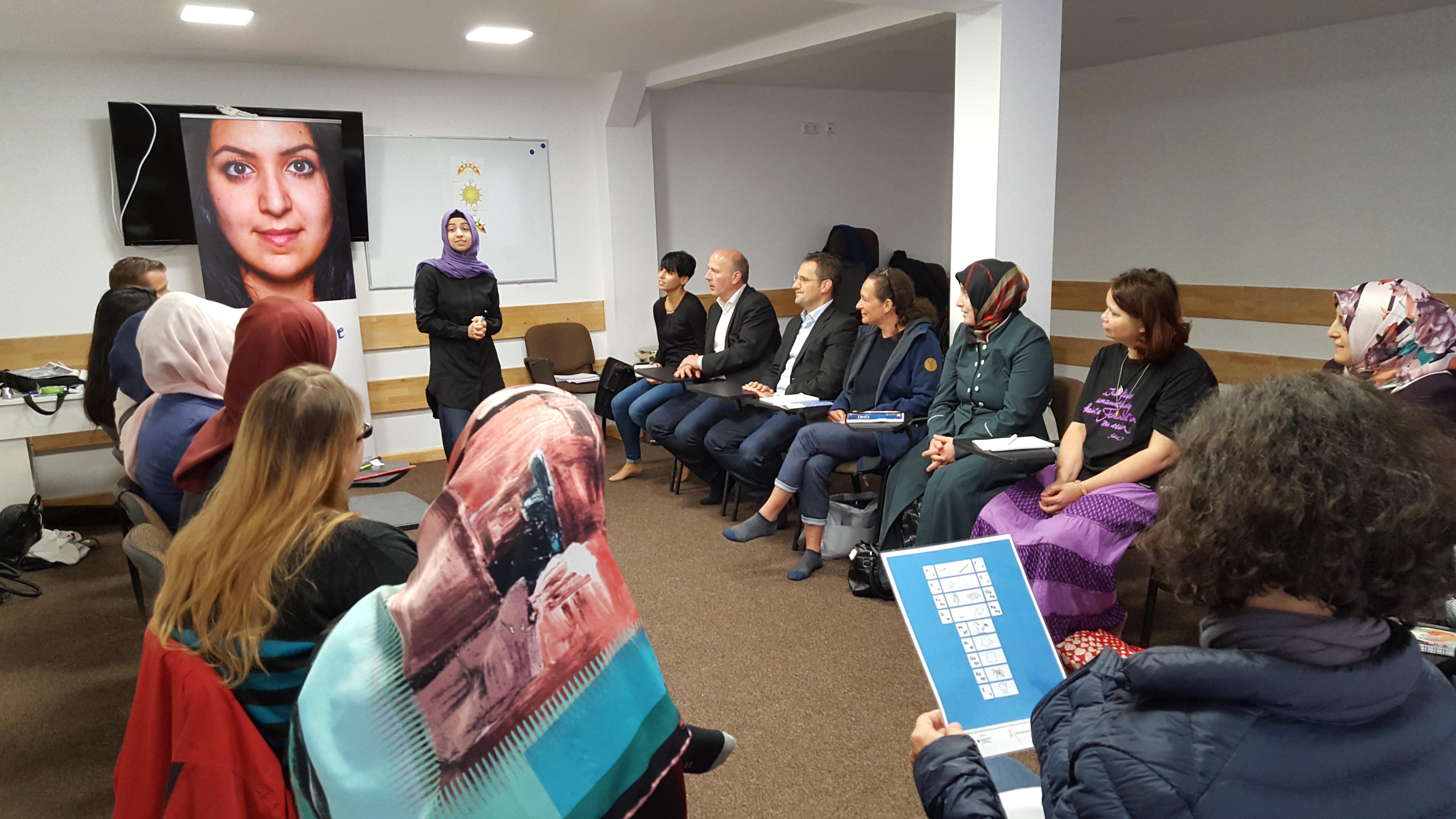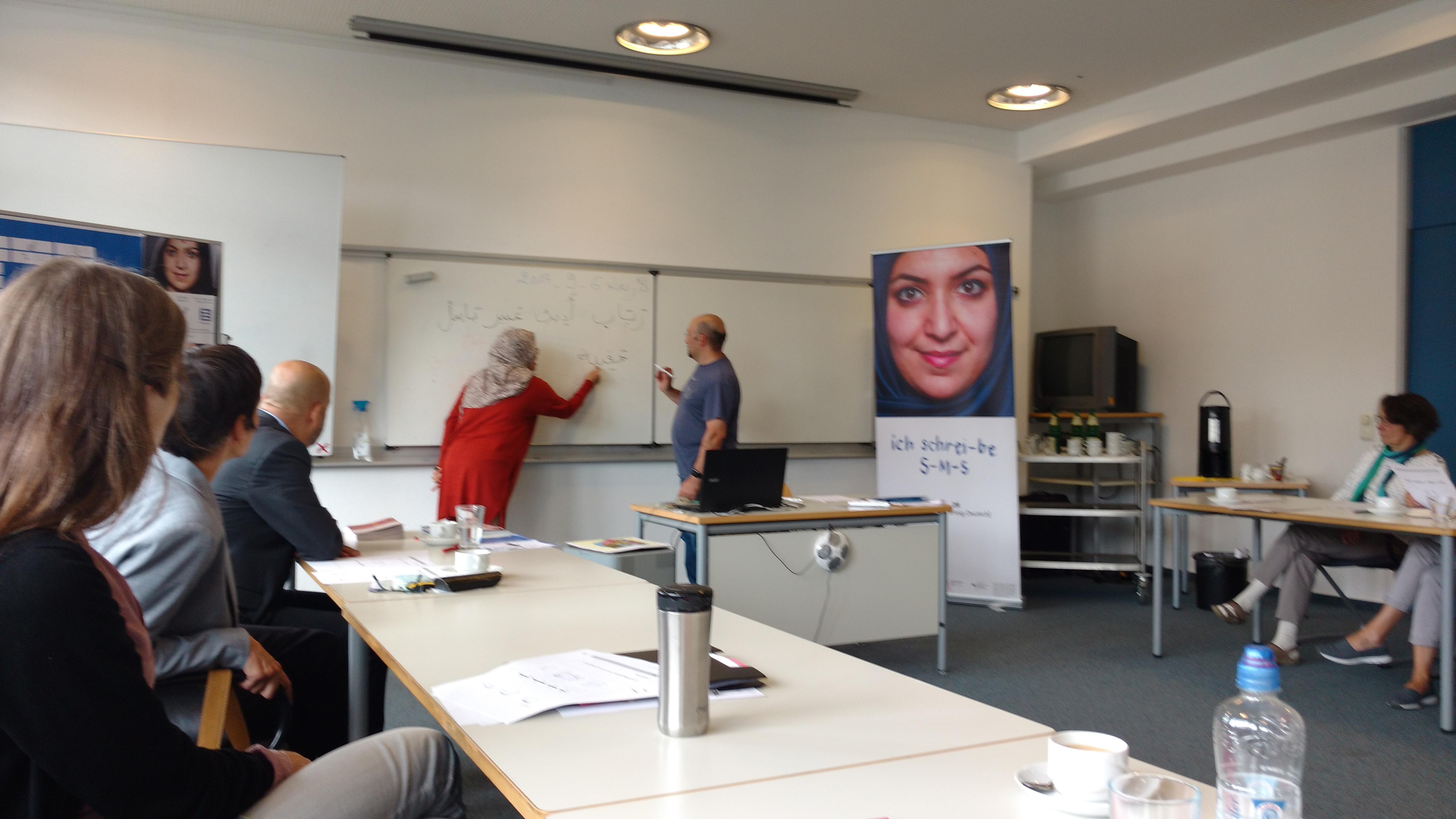 Anlässlich des 51. Weltalphatags hat ABCami verschiedene Aktionen in unterschiedlichen Städten durchgeführt. Teilnehmende aus den Alphabetisierungskursen für arabisch- und türkischsprachige Migrant*innen in der Dar Al-Salam Moschee in Berlin-Neukölln, der Volkshochschule (VHS) in Mainz sowie der Islamischen Gemeinde in Berlin-Spandau gaben eine Einführung in das arabische und türkische Alphabet. Die Methodik war allen drei Workshops gemein: Zu Beginn erfolgte die Buchstabeneinführung in der Muttersprache der Teilnehmenden, um im Anschluss nach dem kontrastiven Ansatz auf Deutsch und in der Muttersprache den Workshop fortzuführen. Unsere