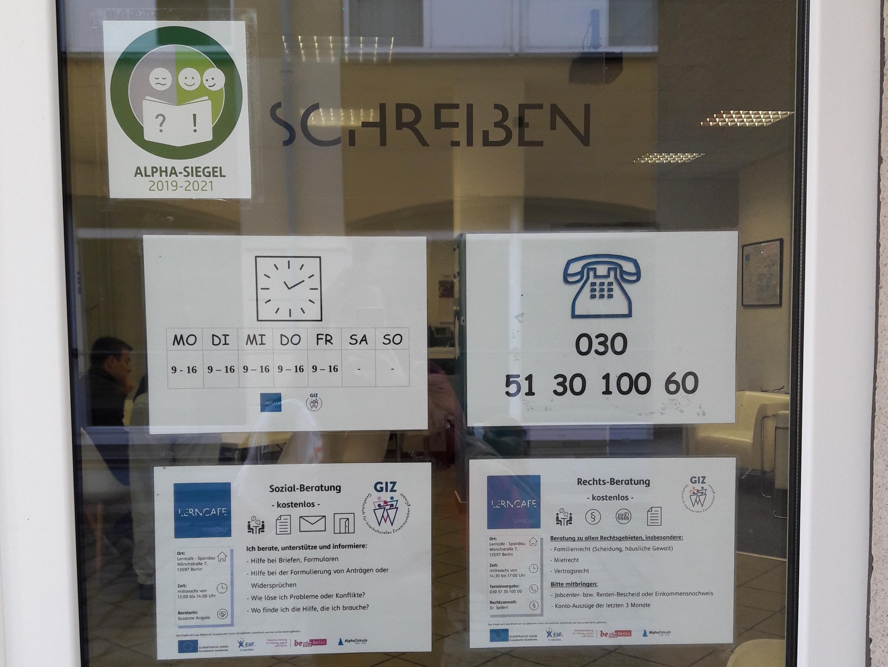 Das Lerncafe Spandau ist ein niederschwelliger Lernort für deutsch sprechende Erwachsene, die Lesen und Schreiben lernen oder verbessern wollen. Es werden Lerngruppen am Vormittag für Anfänger und Fortgeschrittene angeboten, eine offene Lernzeit am Nachmittag und Beratungsangebote. Interessierte sind herzlich eingeladen vorbeizukommen, um gemeinsam ein passendes Angebot für sie zu finden. Die Angebote sind für die Teilnehmenden kostenlos.