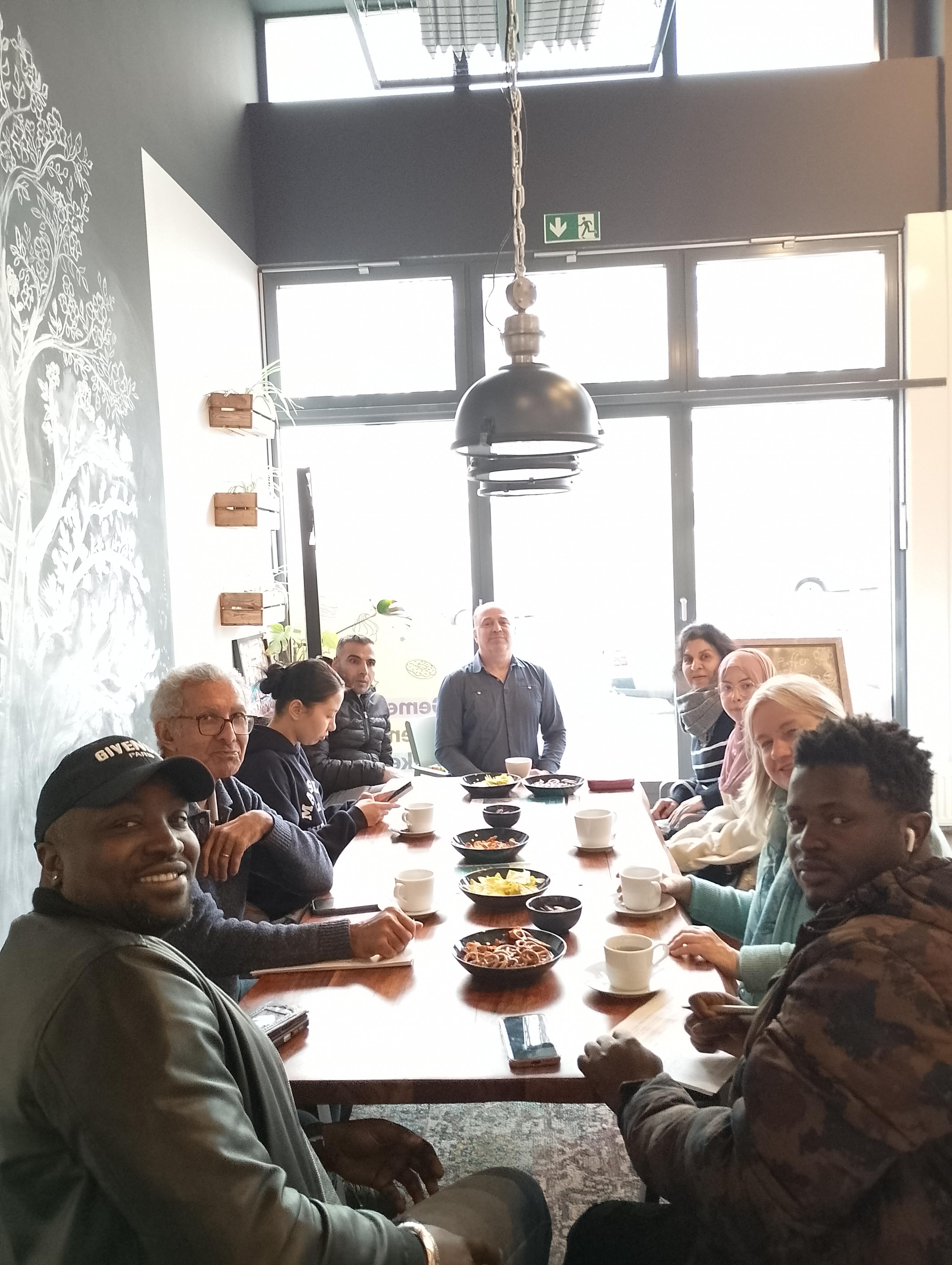 Am 16. März trafen sich Teilnehmende des AMIF-Projekts „Perspektiven schaffen“ und weitere Gäste in den Räumlichkeiten von „heimaten bei berlinovo“ in der Rauchstraße zur gemütlichen Austauschrunde. Das Thema hieß diesmal: „Vielfältige Angebote der Integrationslots*innen, der Migrationsberatung und des GuD (Ankommen in Spandau: Gemeinsam unter einem Dach) - Projekts für Familien“, vorgestellt von den Referent*innen Frau Mandana Safayeh (Integrationslots*innen), Herr Ferdinand von Bieberstein (Migrationsberatung) und Herr Yahya Alaous (GuD Projekt). Es ging um Beratungsmöglichkeiten hinsichtlich Migrations- und Aufenthaltsrecht, Wohnungssuche und Mietrecht sowie um Möglichkeiten der Hilfe durch Sprachmittlung z.B. im Kontakt mit Behörden und Ämtern.