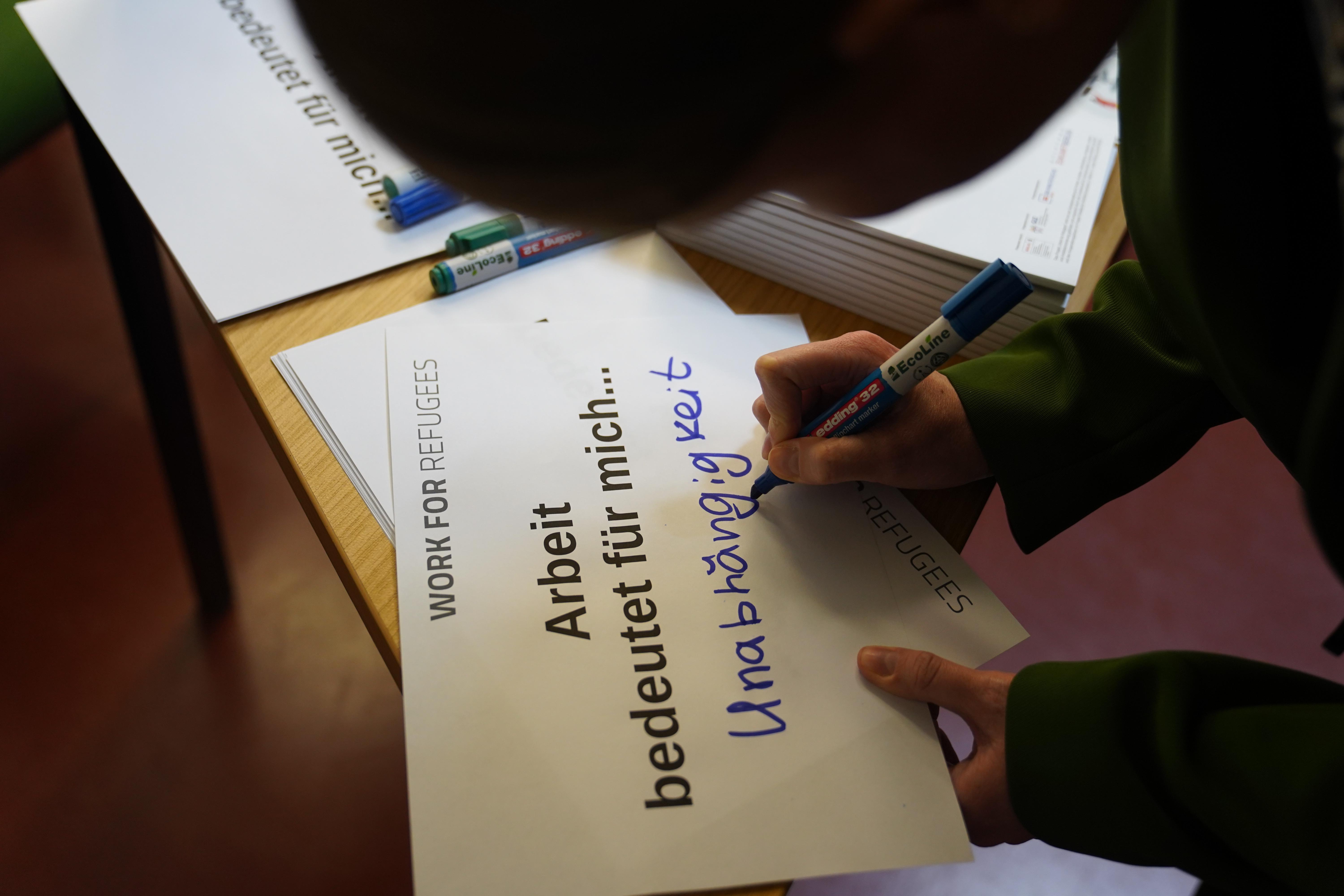Mitarbeiter*innen des Teams von Work for Refugees standen den Teilnehmenden für persönliche Gespräche und Fragen zur Verfügung. Gemeinsam mit dem Jobcenter Lichtenberg wurden wichtige Themen wie die ersten Schritte auf dem Weg in den Arbeitsmarkt und der Zugang zu Unterstützungsangeboten besprochen.