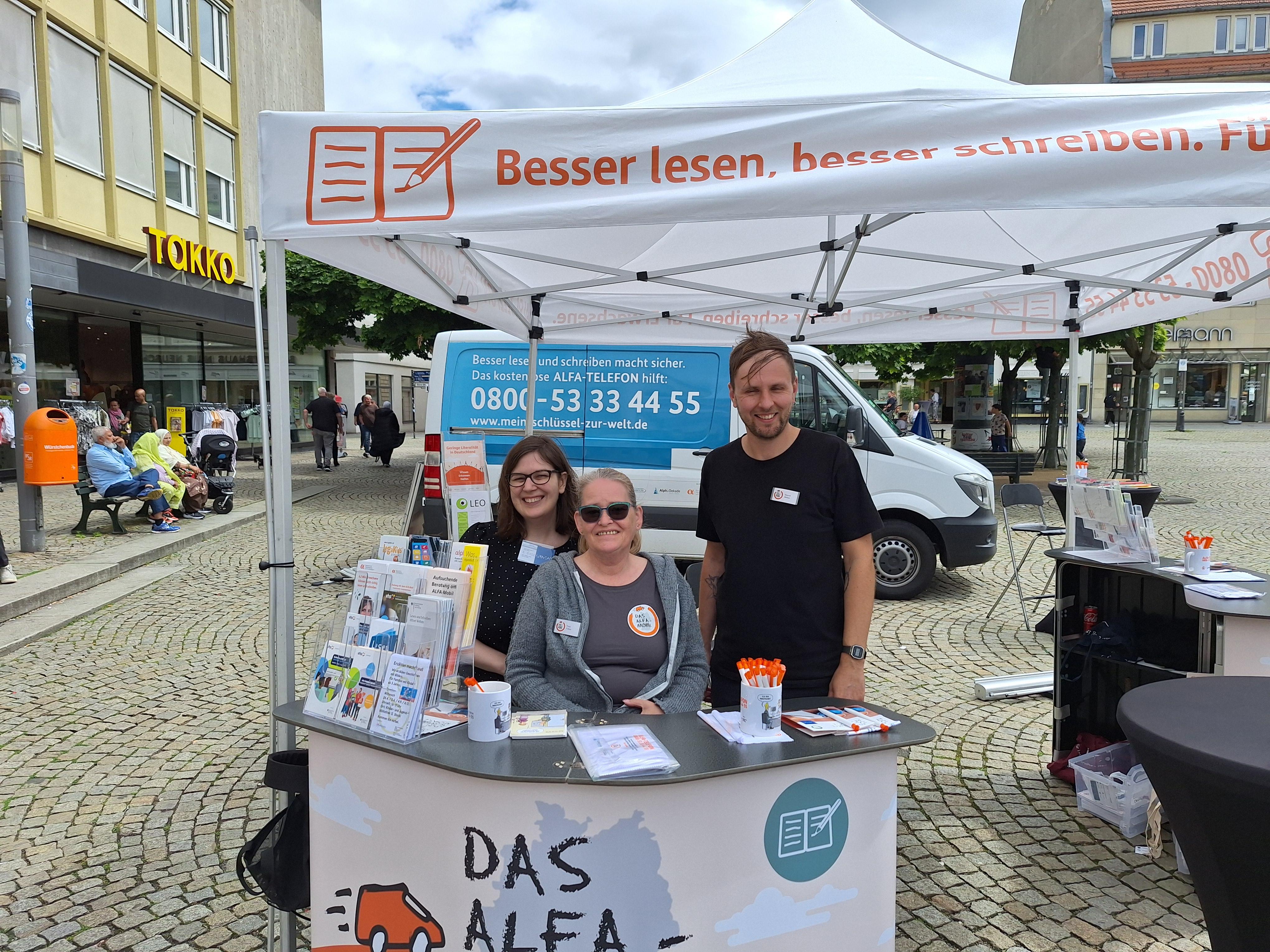Dörte Hinrichs vom Deutschlandfunk berichtet in einer ausführlichen Reportage zu Menschen mit geringen Lese- und Schreibkenntnissen auch über den Besuch des ALFA-Mobils bei uns in Spandau, über unsere kostenfreien Lernangebote im Lerncafe und über unsere Lernerin Tina, die sich selbst mutig der Herausforderung gestellt hat, als Erwachsene Lesen und Schreiben zu lernen.