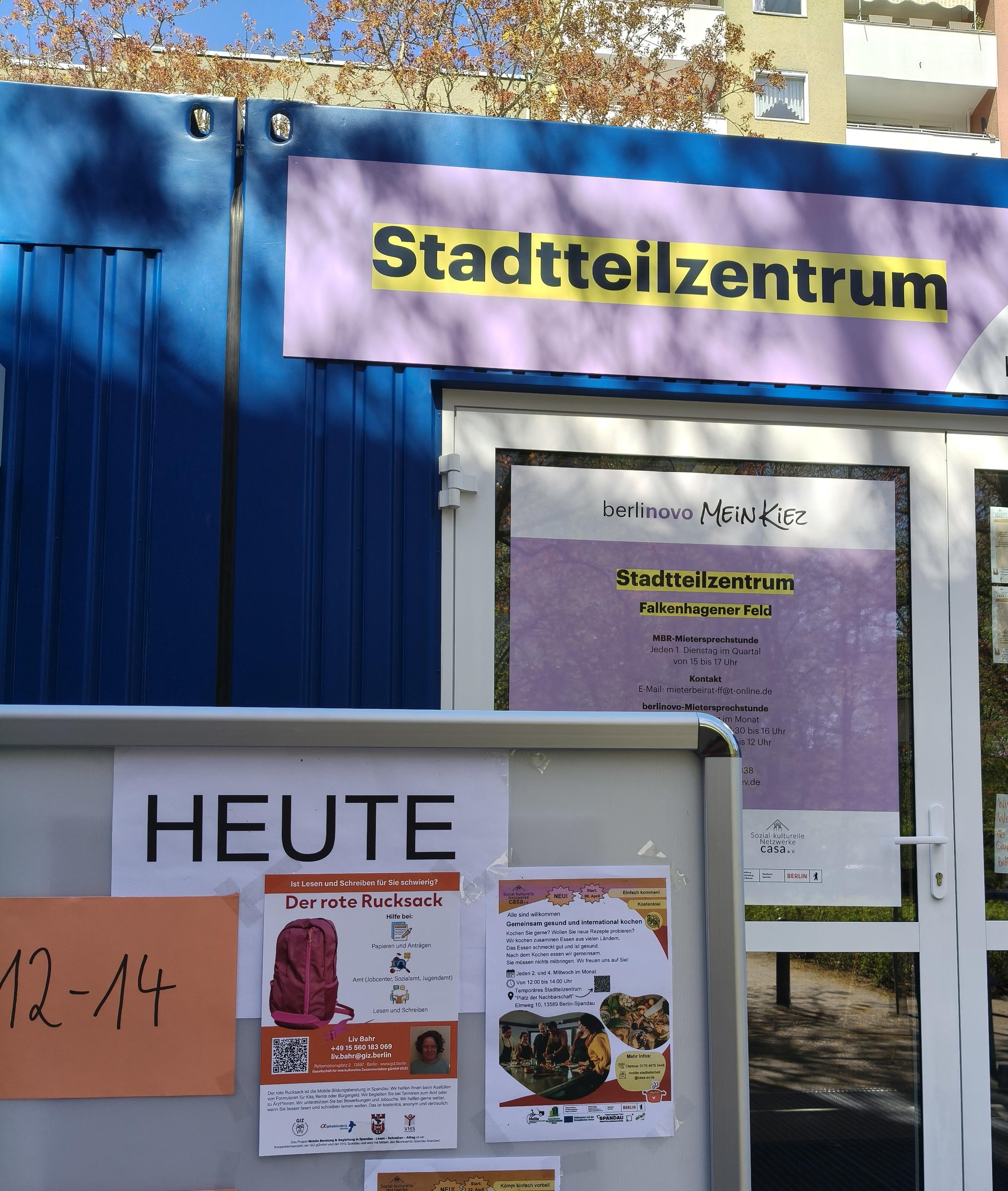 - Temporäres Stadtteilzentrum Falkenhagener Feld, Elmweg 10, 06.05.26, 12-14 Uhr