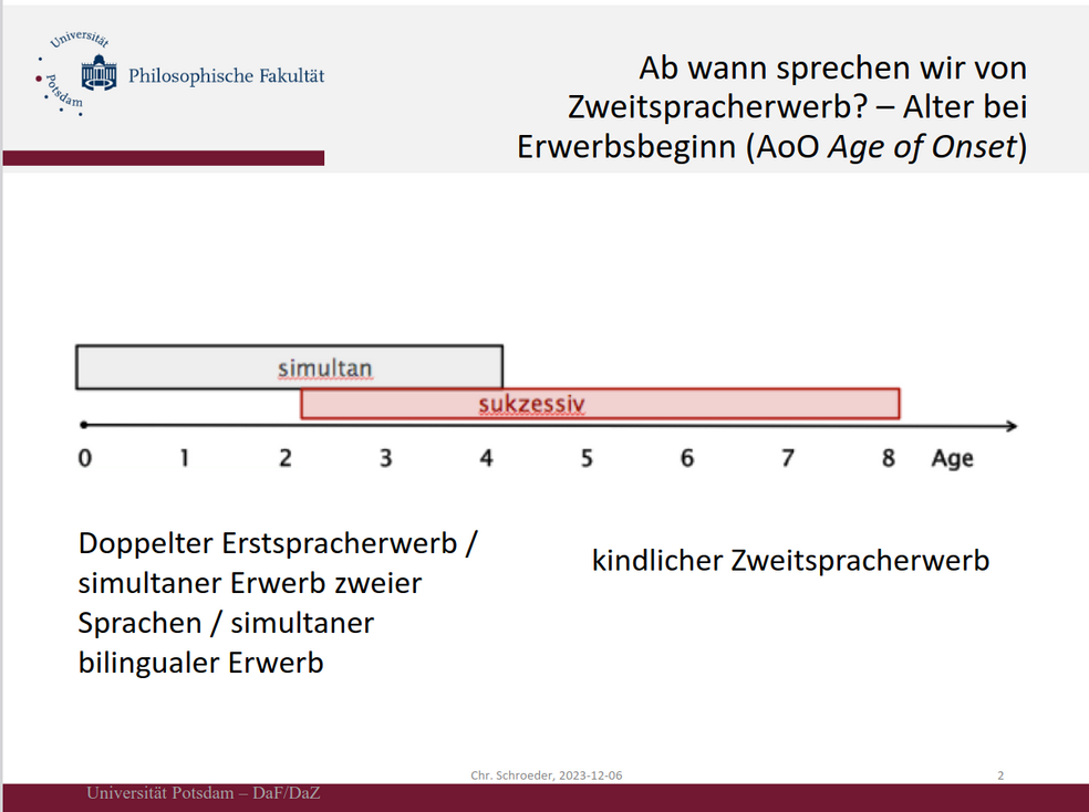 individuelle Dimension der Mehrsprachigkeit. Besonders hervorgehoben wurde der simultane ilinguale Spracherwerb, bei dem Kinder von Geburt an zwei Sprachen erlernen. Ein weiterer Schwerpunkt des Vortrags waren die verschiedenen Phasen des mehrsprachigen Spracherwerbs. Der frühe simultane bilinguale Spracherwerb wurde mit dem späteren kindlichen und erwachsenen Zweitspracherwerb verglichen. Darüber hinaus stellte er Materialien für den Umgang mit Mehrsprachigkeit im Unterricht vor. Die Teilnehmer*innen zeigten großes Interesse und beteiligten sich aktiv an der Diskussion, indem sie ihre eigenen Erfahrungen einbrachten. Wir danken Prof. Dr. Schroeder herzlich für seinen inspirierenden Beitrag.