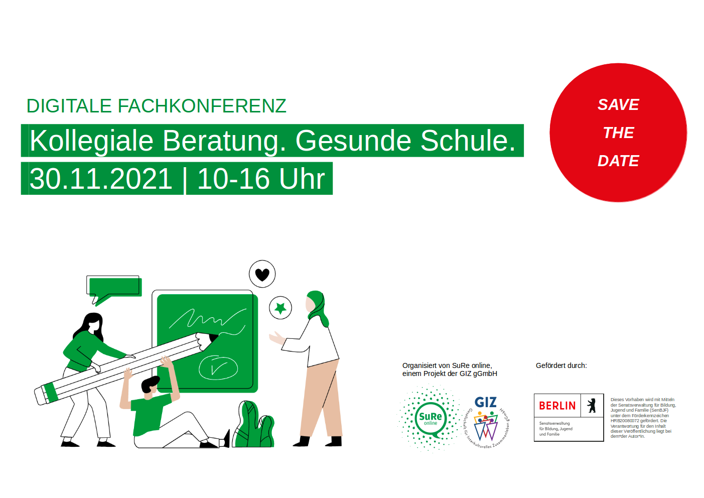 Subjektive Relevanz (SuRe) online wird von der Gesellschaft für interkulturelles Zusammenleben (GIZ) gGmbH umgesetzt und von der Senatsverwaltung für Bildung, Jugend und Familie (SenBJF) gefördert. SuRe online bietet kollegiale Beratung für pädagogische Fachkräfte in Form von Workshops vor Ort und digital via Webkonferenz sowie in einem speziell entwickelten Onlinetool (https://sure.giz.berlin) an. Zudem können pädagogische Fachkräfte eine SuRe-Coaching-Fortbildung absolvieren und so selbst kollegiale Beratung anleiten. Die Teilnahme an den Angeboten ist kostenlos.