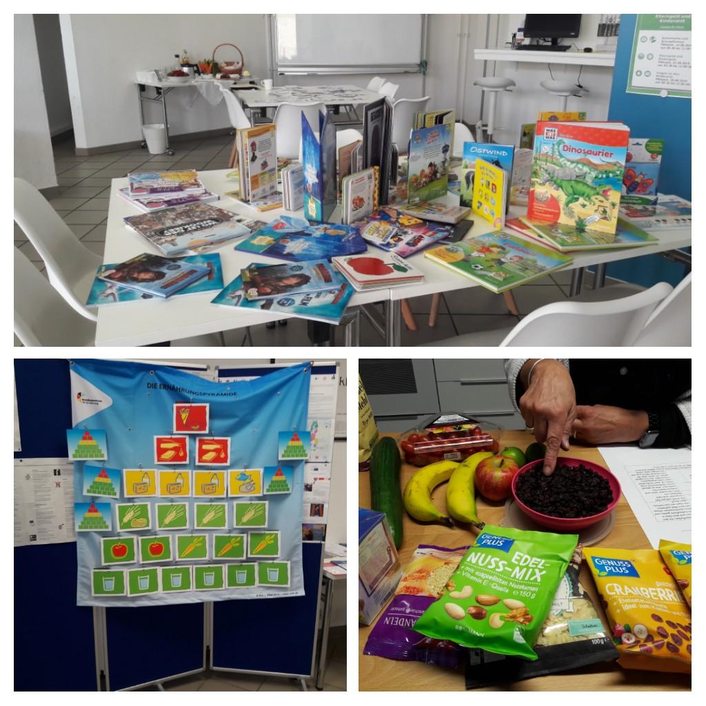 In den Workshops wurden Themen behandelt, die für junge Eltern besonders wichtig und interessant sind: gesundes Essen für Kinder, Umgang mit Medien, wichtige Behördengänge. Die jungen Eltern sollten dafür sensibilisiert werden, wie wichtig es im familiären Kontext ist, gut Lesen und Schreiben zu können, um unter anderem für die eigenen Kinder bestmögliche Voraussetzungen zu schaffen, ihnen z. B. bei den Hausaufgaben helfen zu können. Das Thema Lesen und Schreiben war die ganze Zeit implizit präsent. So wurden beispielsweise die Inhaltsstoffe und Nährwerte von Produkten anhand der Packungsaufdrucke betrachtet und ihre Bedeutung diskutiert. Es wurden Kochrezepte gelesen und nachgekocht oder gemeinsam Elterngeld-Anträge ausgefüllt.