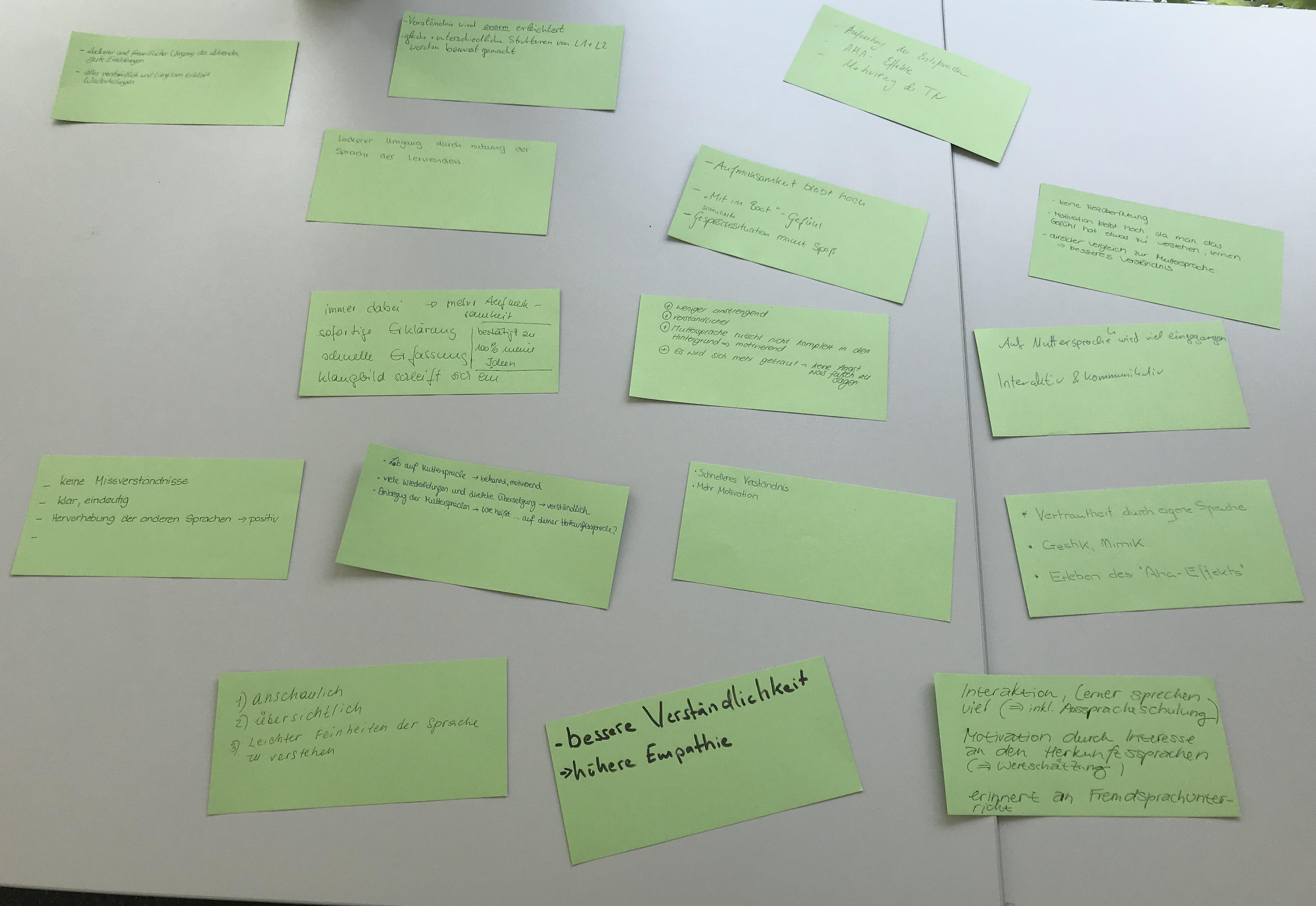 „Hilflos!“ „Lost in Space!“, sind nur wenige der Umschreibungen, mittels derer die Studierenden ihre Unterrichtserfahrung zu beschreiben versuchten. „Jetzt“, so eine Studierende weiter, „weiß ich, wie sich Lernenende in einem Integrationskurs fühlen, in dem nur Deutsch gesprochen wird.“
