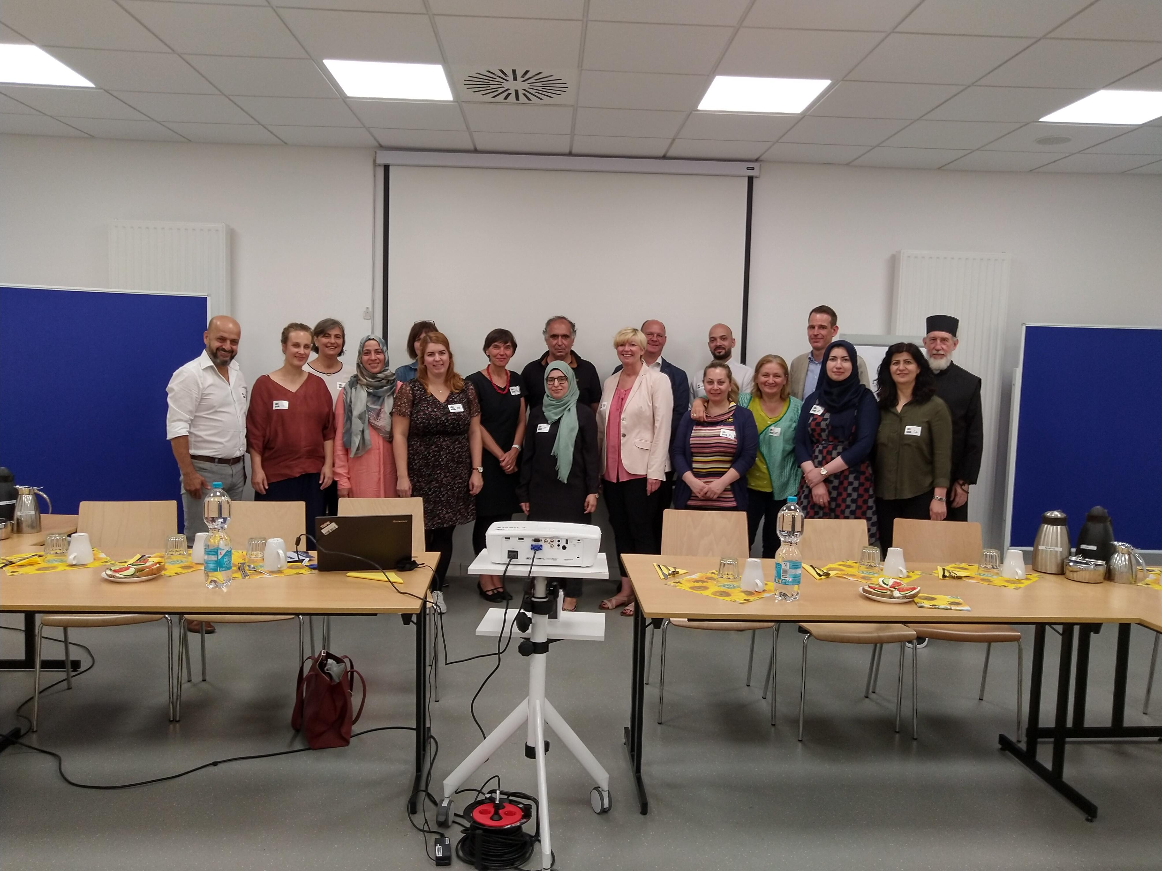 Susanne Blasberg-Bense vom Ministerium für Schule und Bildung des Landes Nordrhein-Westfalen legte die Situation der Schulen in NRW dar und sprach sich explizit für Einbindung der Eltern in wichtige Bildungsprozesse aus. Abouna Efrem Kuckhoff, Antiochenisch-Orthodoxe Metropolie von Deutschland und Mitteleuropa, griff den kontrastiven Ansatz und plädierte stärkere Kooperation mit orthodoxen Kirchen. Mona Kheir El Din vom Haus Vielfalt in Tannenbusch Bildungs- und Familienzentrum skizzierte in ihrem Input die vielfältige des Trägers.