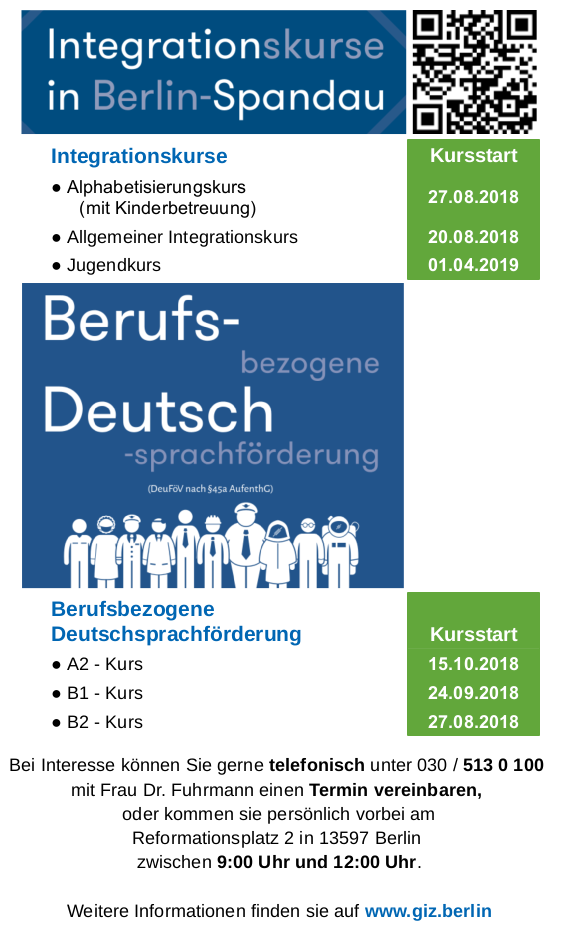 Das WiA-Büro Spandau ist ein Projekt der GIZ e.V. und wird aus Mitteln der Senatsverwaltung für Integration, Arbeit und Soziales gefördert.