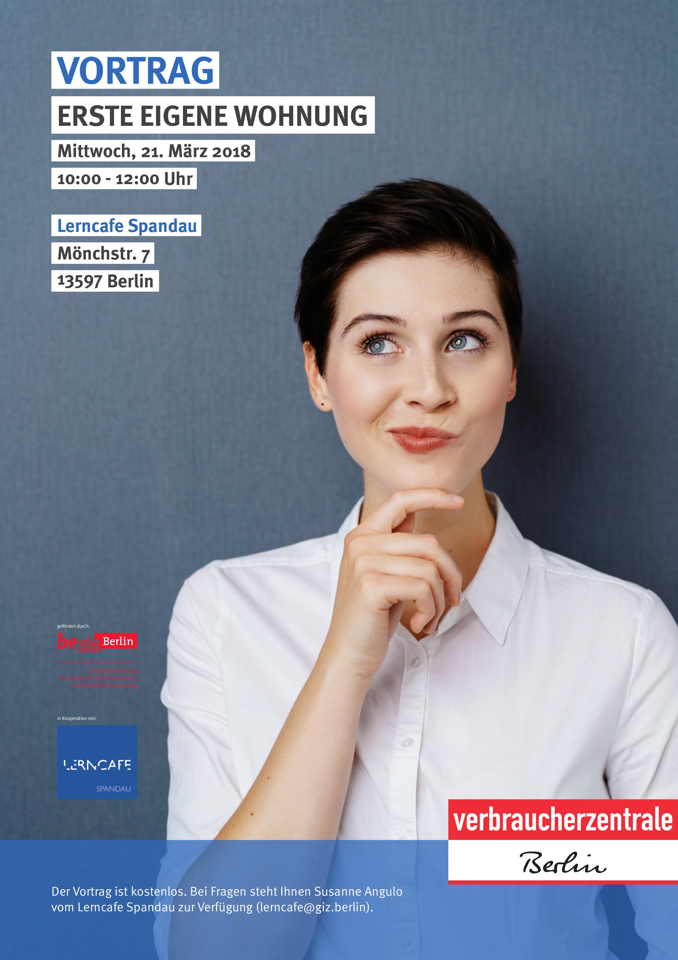 Der nächste Vortrag zum Thema „Die erste eigene Wohnung“ findet am kommenden Mittwoch, den 21. März 2018, von 10 bis 12 Uhr im Lerncafe Spandau (Mönchstr. 7, 13597 Berlin) statt. Dazu laden wir alle Interessierten herzlich ein!
