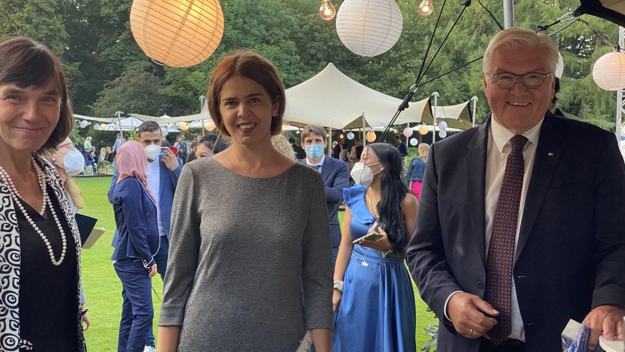 Am 20.08.2021 wurde Afsaneh Afraze durch den Bundespräsident Frank-Walter Steinmeier zu einem Dankesfest für in der Corona-Pandemie besonders engagierte Bürgerinnen und Bürger am ins Schloss Bellevue eingeladen. Gemeinsam mit der Geschäftsführerin nahm die Koordinatorin der Frauenprojekte die Einladung an. Für unsere Arbeit und das Engagement der vielen Frauen und Männer, die bei uns tausende Masken genäht haben, ist das eine schöne Auszeichnung und Wertschätzung. Wir sagen auch danke an alle, die uns unterstützt haben mit Nähmaschinen, Material und sonstiger Spenden.