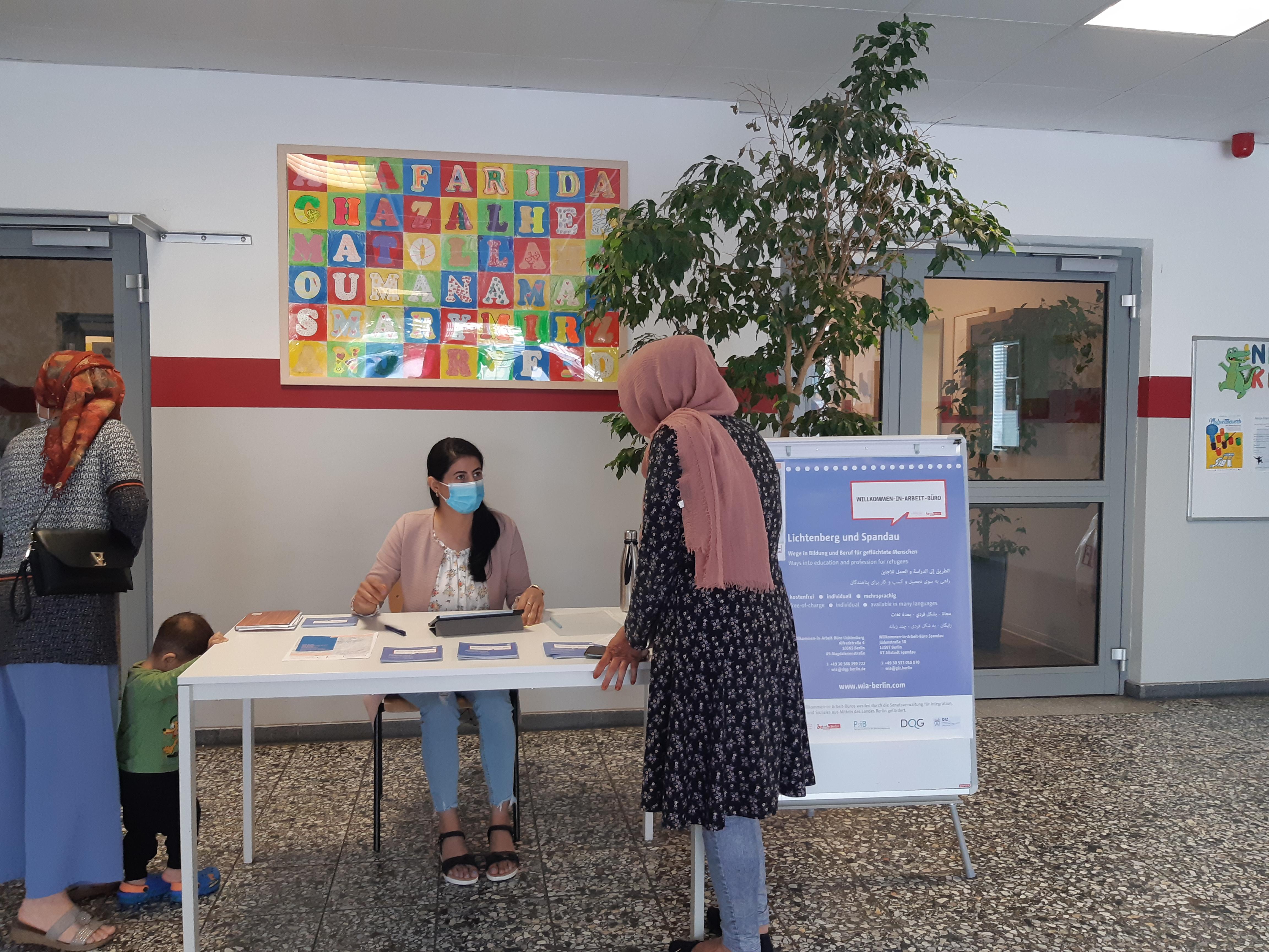 Das Team des WiA-Büros Spandau kooperiert bereits seit mehreren Jahren eng mit den Spandauer Gemeinschaftsunterkünften für Geflüchtete (GU). In Zusammenarbeit mit den Heimleiter*innen und Ehrenamtskoordinator*innen wurden regelmäßige Sprechstunden in den Unterkünften vor Ort organisiert. Mitarbeiter*innen des WiA-Büros Spandau sind ca. alle zwei Wochen vor Ort in den Unterkünften GU Pichelswerderstrasse, GU Rohrdamm und GU Rauchstrasse, um die Bewohner*innen über unsere Beratungsangebote zu informieren sowie Termine für individuelle Beratungen zu vereinbaren.