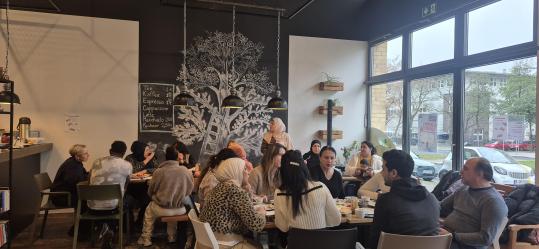 Am Donnerstag, den 28.11.2028 organisierte das Team von heimaten ein gemeinsames Frühstück. Jeder, der Lust auf ein Frühstück in einer größeren Runde als zu Hause üblich hatte und gerne neue Leute kennenlernen und sich mit ihnen in entspannter Atmosphäre austauschen wollte, war herzlich eingeladen. Es fehlte nicht an Themen. Zu den besonderen Gästen beim Frühstück zählten die Spandauer Integrationslots*innen. Sie berichteten anderen Teilnehmenden von ihrer Arbeit und boten die Unterstützung bei verschiedenen Anliegen und Belangen an.