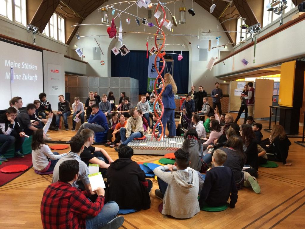 Während der Projekttage kamen täglich Schüler*innen der 7. und 8. Klassen aller Schulformen in dem Parcours im Festsaal des evangelischen Johannesstiftes. Ziel der Veranstaltung ist es, sie frühzeitig und geschlechtersensibel durch erlebnis- und handlungsorientierte Impulse in dieser Lebensphase zu unterstützen. Auf der Grundlage der Aufgaben, die sie sich an jeder Station aussuchten, bzw. der Lösungsstrategien für die jeweiligen Aufgaben, erhielten die Schüler*innen verschiedene Stärken-Aufkleber von den Reisebegleiter*innen. Die Projektbegleitende Evaluation zeigt, wie wichtig es für den Selbstwert der Jugendlichen sowie deren Eltern ist, dass individuelle Potenziale gesehen und wertgeschätzt werden.