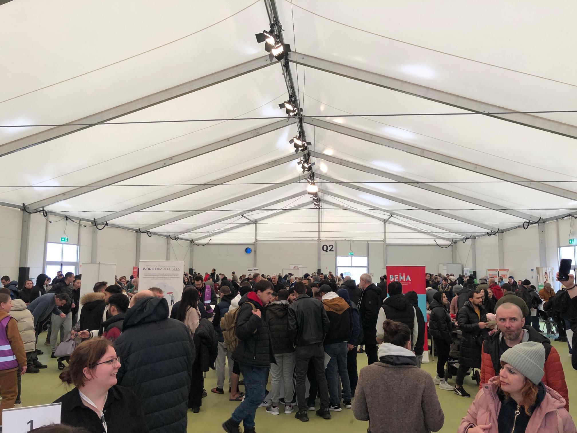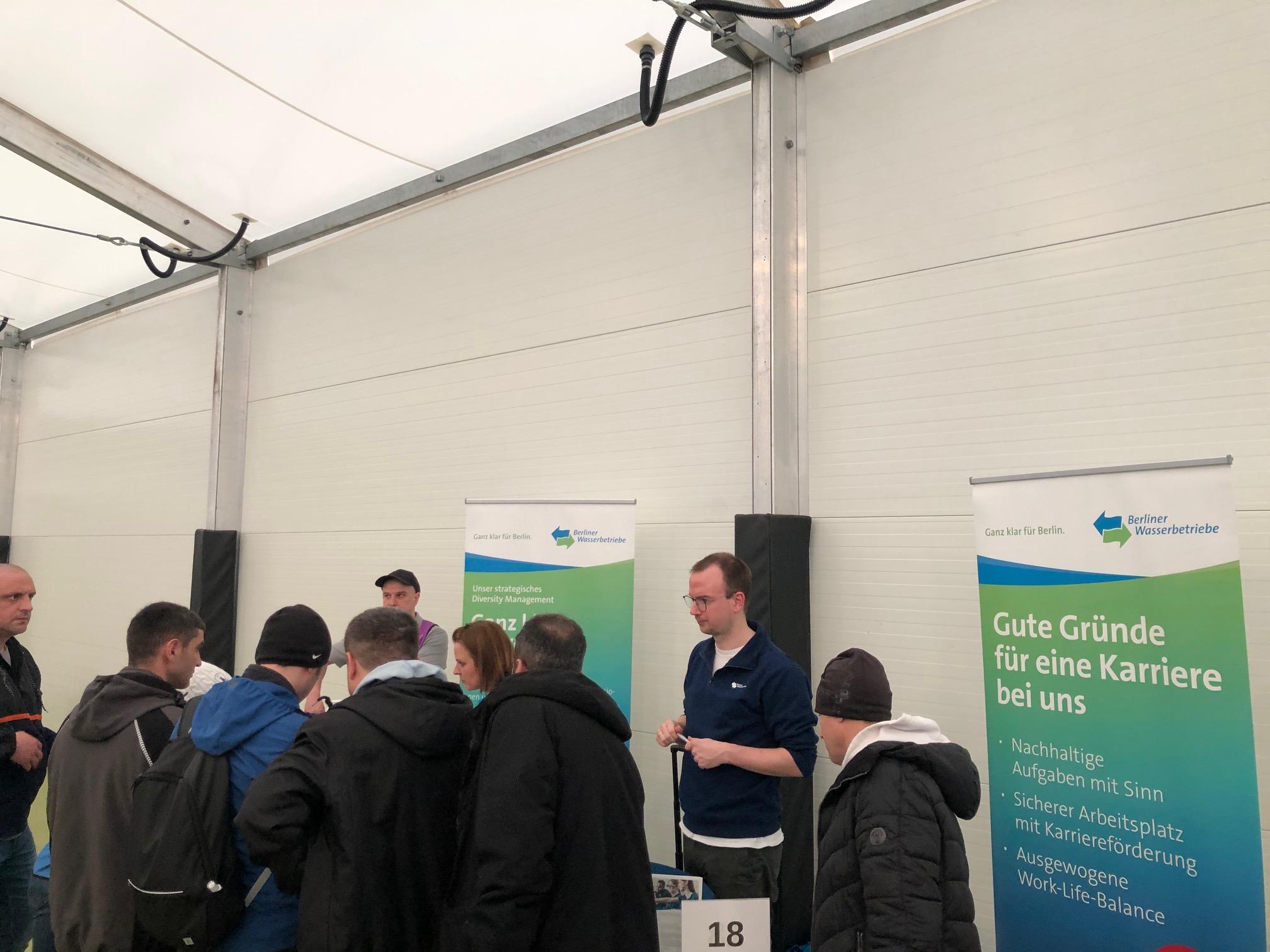 Mit dieser 2. Jobmesse konnte angeknüpft werden an die 1. im letzten Herbst. Damals kamen 700 Geflüchtete, die sich für Arbeitsmöglichkeiten interessierten. Schon nach der ersten halben Stunde zur 2. Jobmesse wurden 550 Bewohner*innen des Ankunftszentrums Tegel gezählt, insgesamt war die Nachfrage zur Jobmesse seitens der Besucher*innen genauso groß wie zur 1. Tegel-Jobbörse.