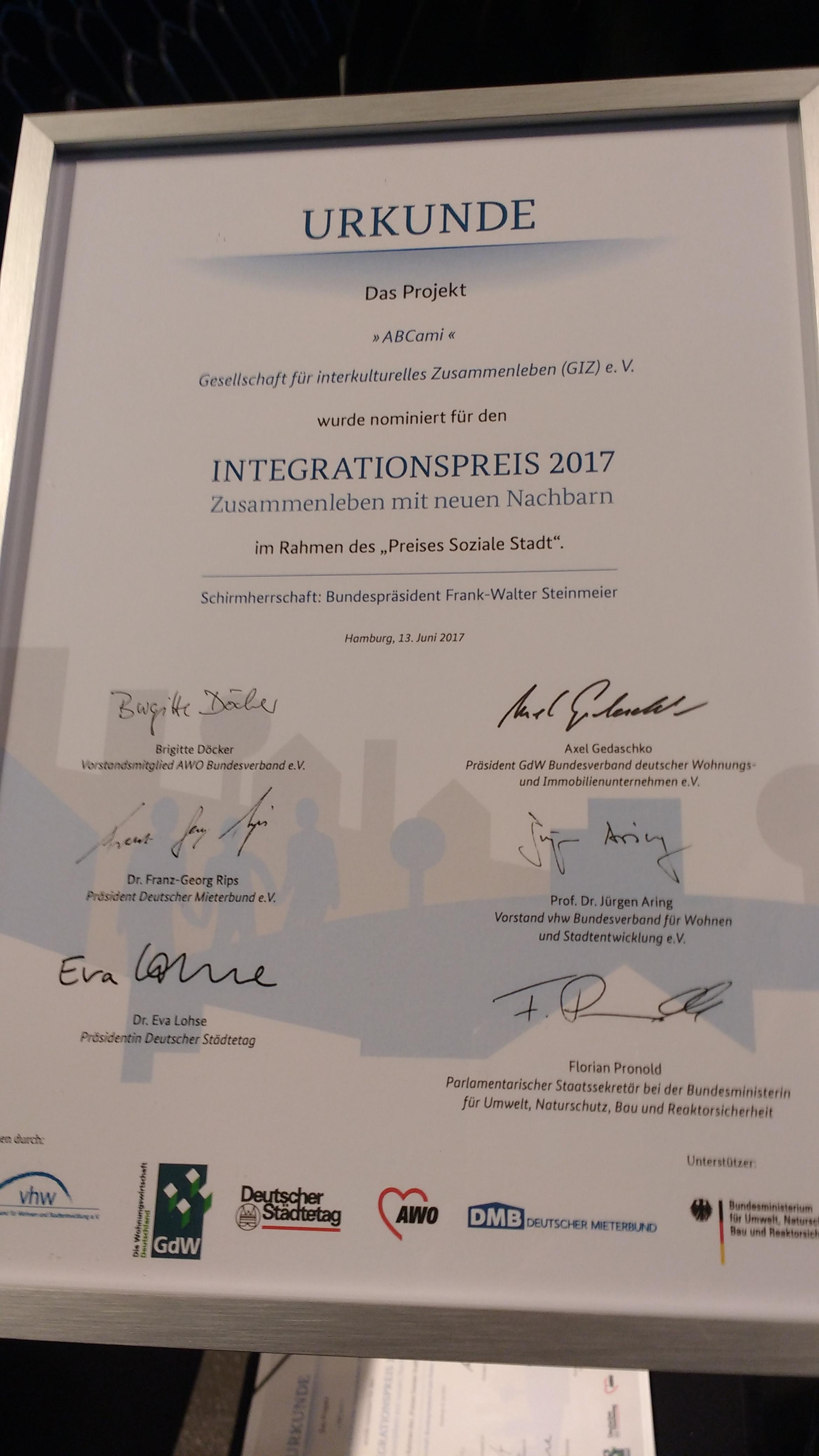 Das Projekt ABCami von der GIZ e.V. wurde in der Kategorie Netzwerke nominiert. Wir bedanken uns ganz herzlich für die Nominierung und für die lebhafte Veranstaltung.