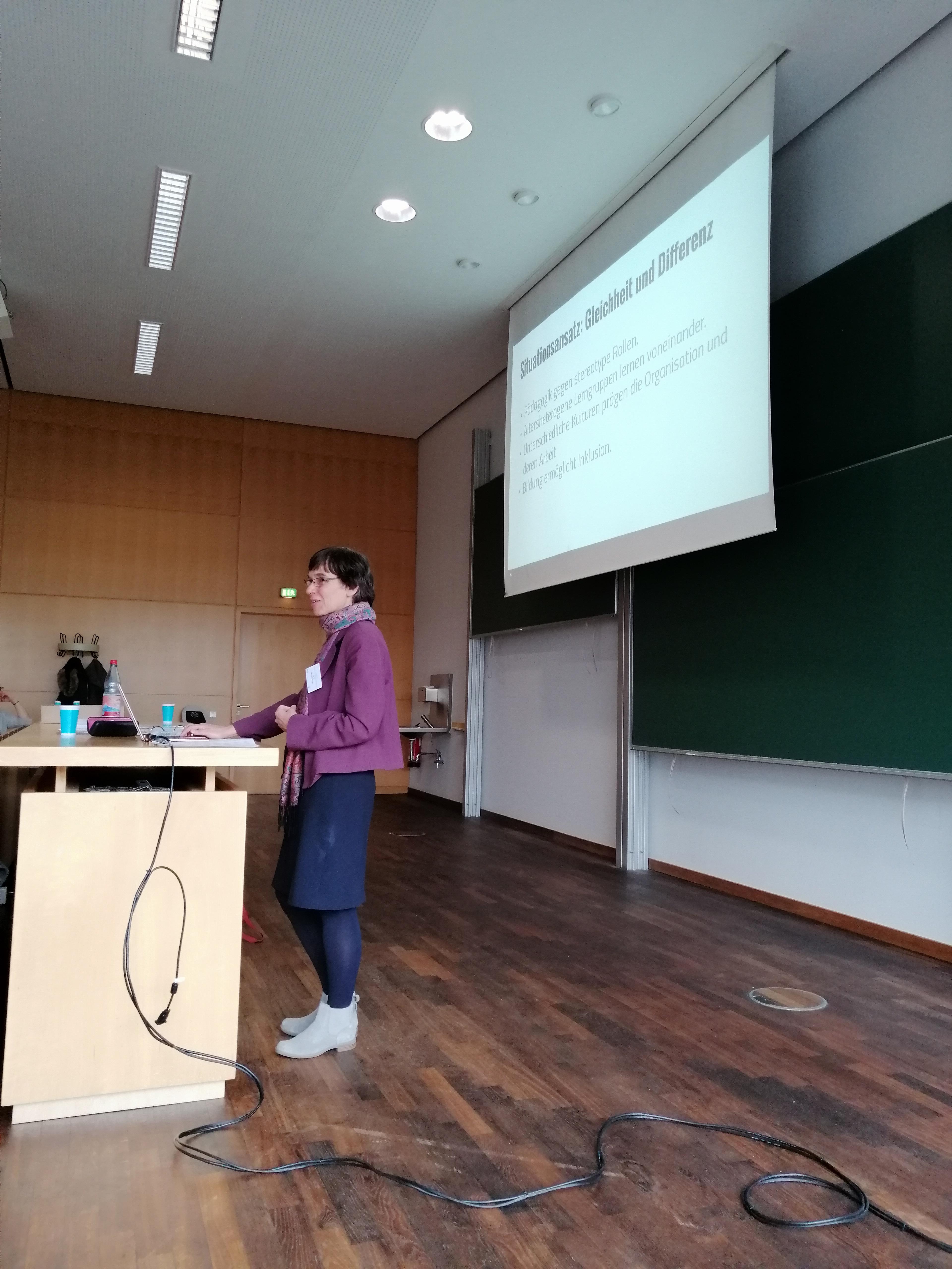 Im Anschluss wurde der gleiche Unterrichtsinhalt nochmals durchgeführt, diesmal allerdings nach dem kontrastiven Ansatz auf deutsch-arabisch. Das Fachpublikum musste feststellen wie schwer es ist, selbst Bruchstücke einer ihnen gänzlich unbekannten Sprache zu begreifen, ohne dabei auf die Muttersprache zurückgreifen zu können.