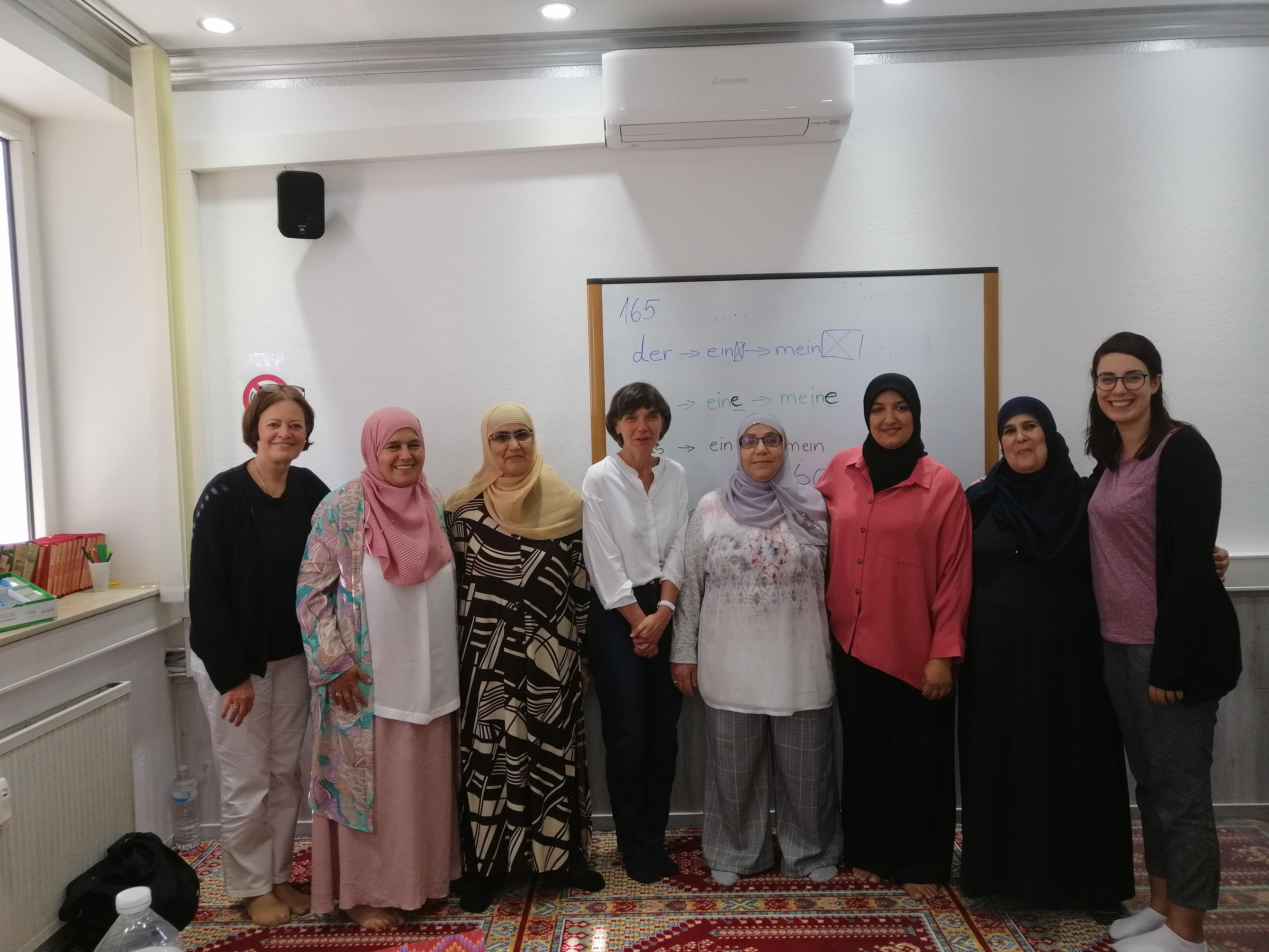 Am 23. August besuchte Karin Küßner, KASA-Beiratsmitglied und Leiterin der Koordinierungsstelle Dekade für Alphabetisierung, den KASA-Alphabetisierungskurs in Frankfurt in der Moschee Haus der Wohlfahrt e.V., um den Kurs kennenzulernen und die tolle Arbeit der Lokalkoordinatorin Faouzia Mounsif-Amsiouji zu sehen. Gemeinsam mit der KASA-Projektleitung Dr. Britta Marschke und der Regionalkoordinatorin für Hessen, Nadine Al-Khafagi, haben die Teilnehmerinnen im Kurs den unbestimmten und bestimmten Artikel geübt.