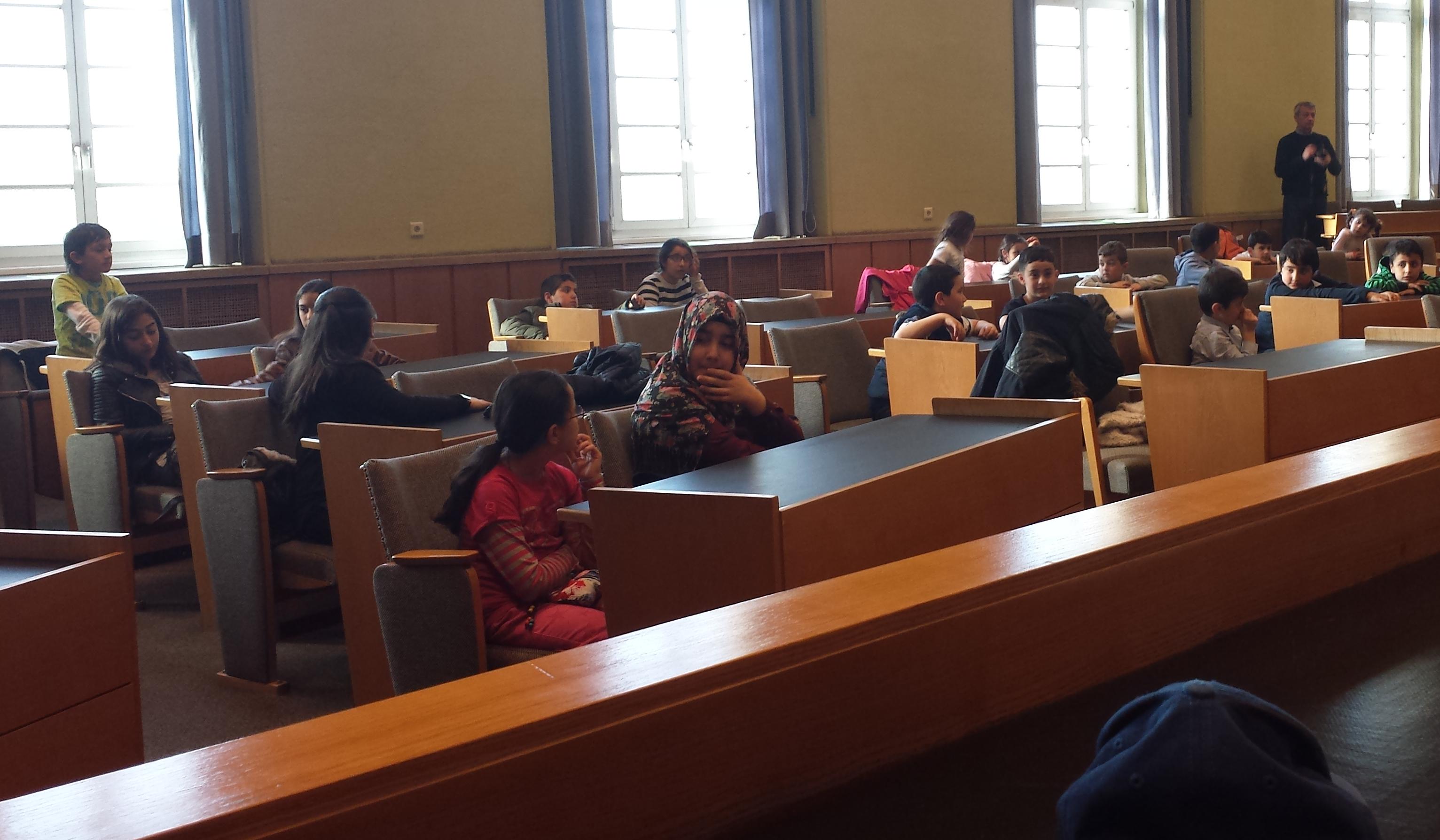 Dr. Ersin Nas, Vorsitzender des Kulturzentrums Forum Spandau e.V., empfing die Familie vor dem großen Sitzungssaal, in dem sich viele andere Spandauer Kinder aufhielten. Der junge Syrer setzte sich zu ihnen. Einige Kinder hatten die Rolle des Bürgermeisters und der Stadträte übernommen und konnten vortragen, was sie sich für Spandau wünschen.
