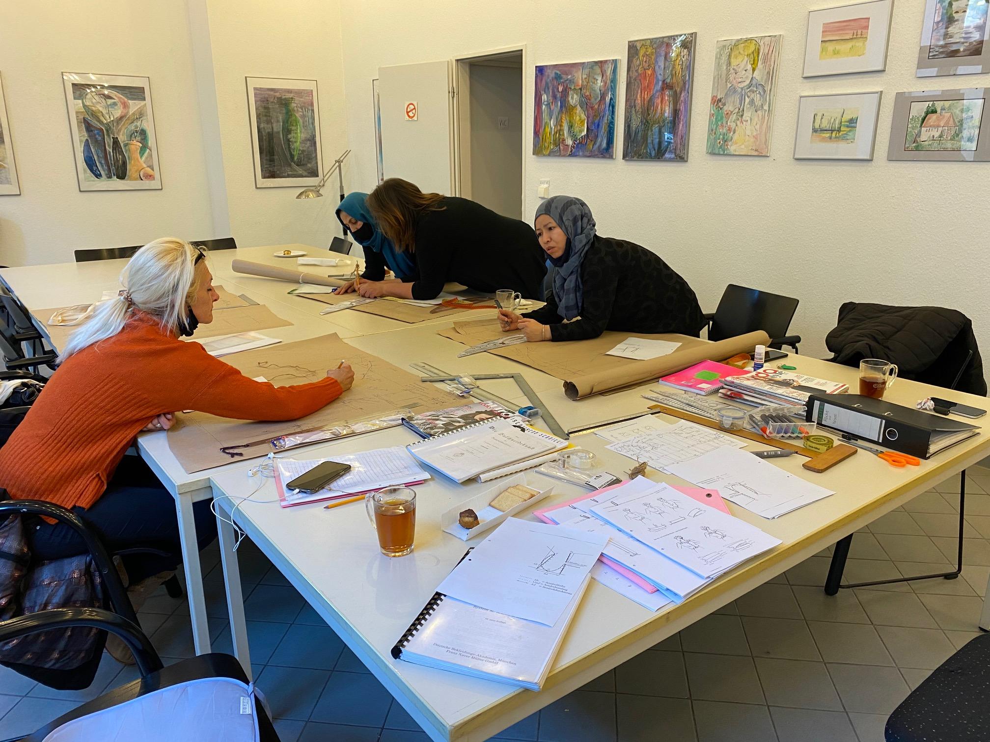 Wir als GIZ wollten ihnen das ermöglichen und organisierten dementsprechend Räumlichkeiten bei einer kompetenten Nähdozentin, die nunmehr seitdem 25. Oktober 10 Teilnehmerinnen an drei Tagen in der Woche in der Galerie Havelspitze in der Wasserstadt Spandau im Nähen unterrichtet.