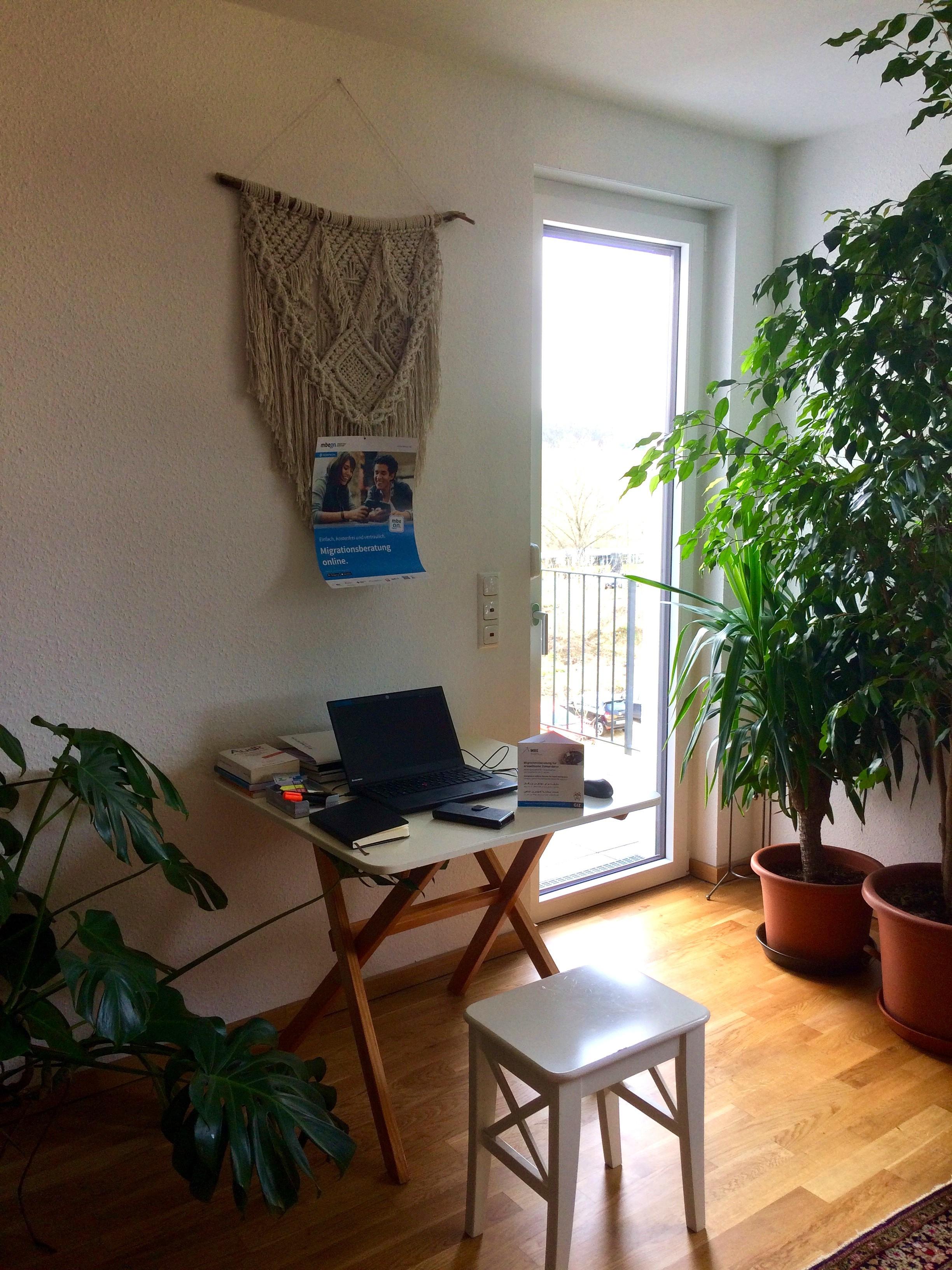 Nämlich zum einen als telefonische Beratung (030-513 01 00 00 oder 0151 555 30 25 7) und zum anderen als Onlineberatung über die App mbeon. Auf diese Weise funktioniert die Unterstützung von Ratsuchenden auch prima von zu Hause aus - das Home Office ist schon eingerichtet.