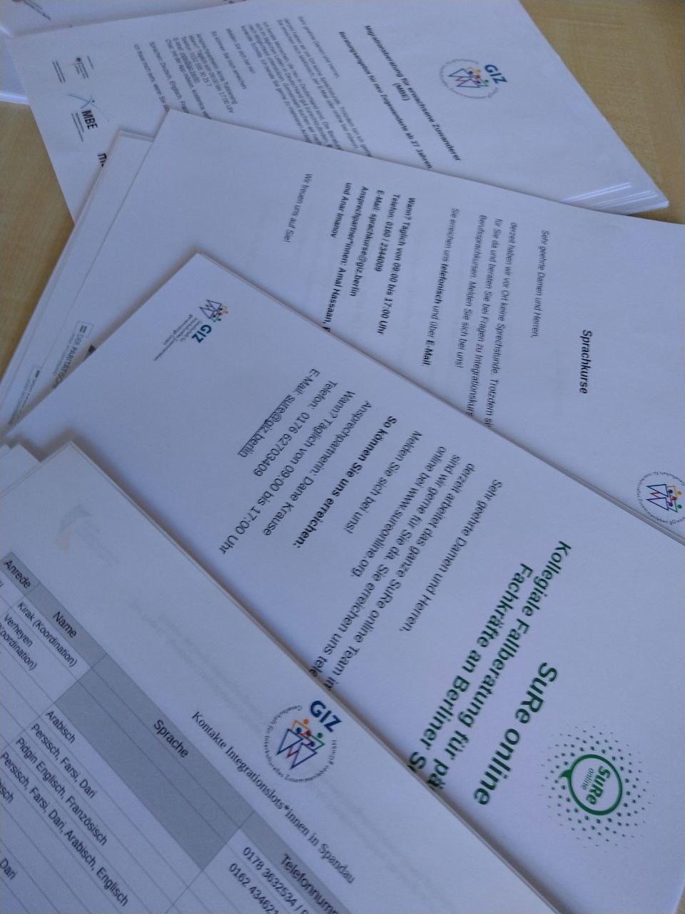 Many clients of GIZ gGmbH are currently unsure and do not know whether and how the different offers in GIZ's are currently being continued. For this reason, handouts for each project with information about the current availability are now present in the main office of GIZ gGmbH at Reformationsplatz 2, 13597 Berlin, which can be given to interested parties.