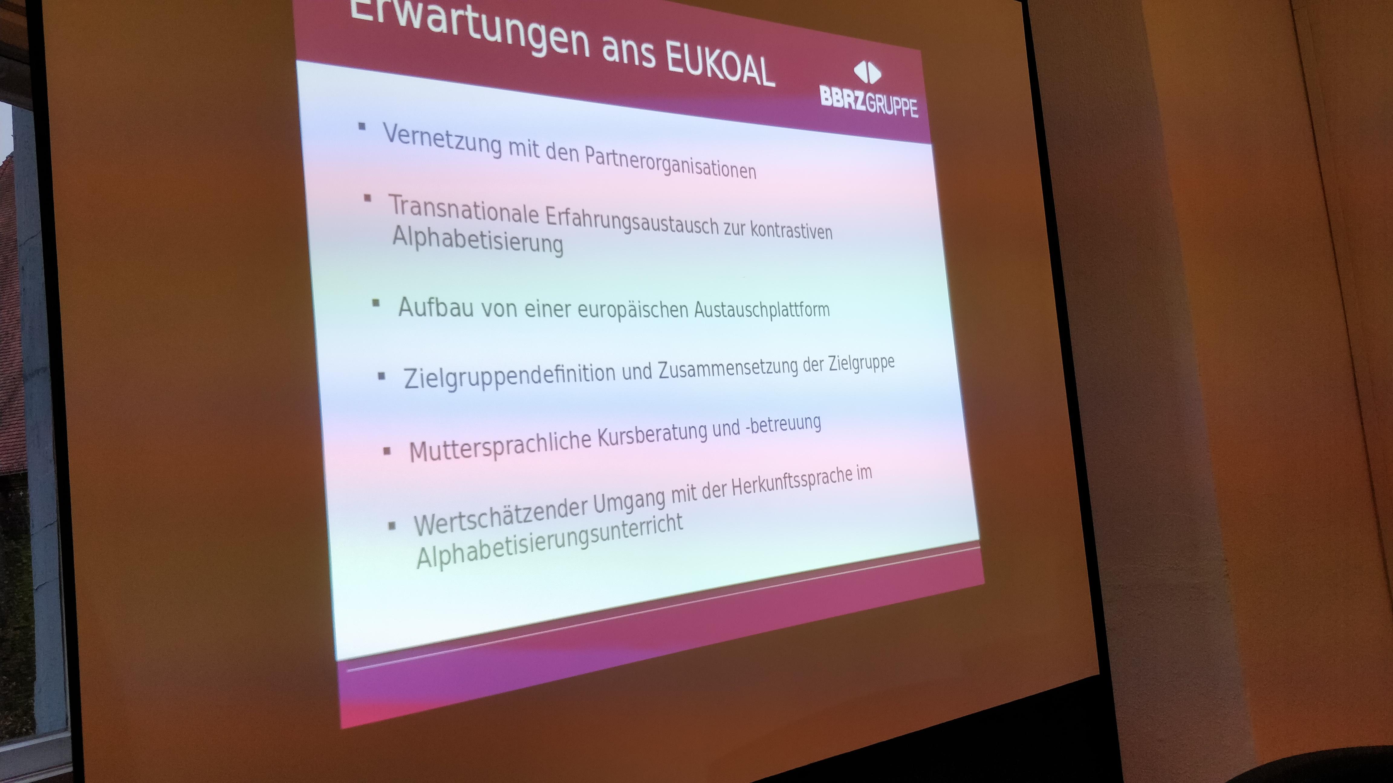Das Berufsförderungsinstitut Oberösterreich (BFI) berichtet auf seiner Internetpräsenz über das Projekt EUKOAL, das sich die Etablierung eines Kooperationsnetzwerks in der kontrastiven Alphabetisierung auf die Fahne geschrieben hat. Der Bericht unterstreicht die Bedeutung der GIZ gGmbH im Hinblick auf die erfolgreiche Umsetzung des Projekts: „Leadpartner ist die Gesellschaft für interkulturelles Zusammenleben, Berlin (GIZ), welches Lern-Materialien entwickelt und verwendet, welche es erlauben, die Muttersprachen Arabisch, Türkisch und Persisch in den Alphabetisierungsunterricht miteinzubeziehen.“