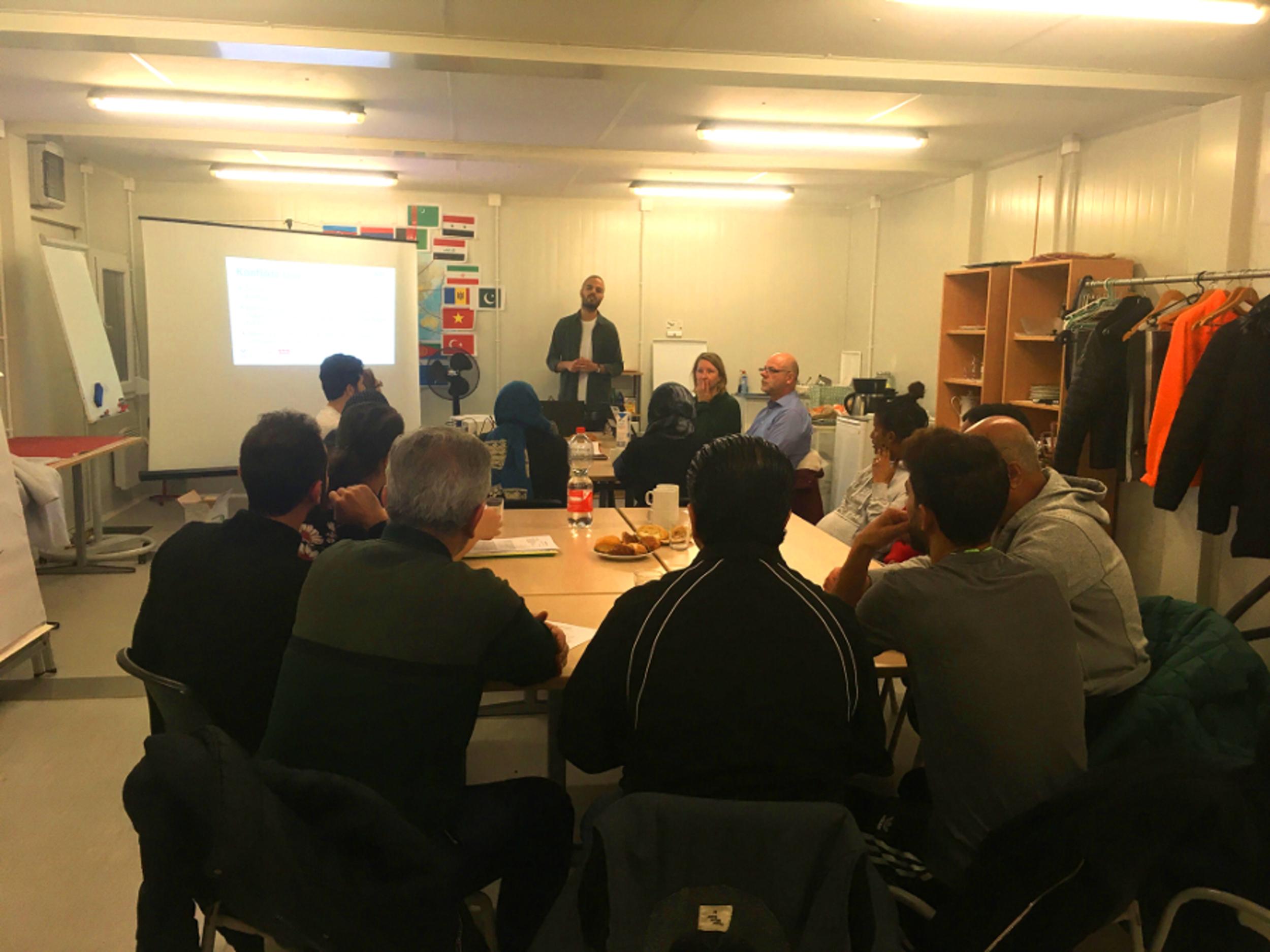 Kurz vor Weihnachten neigt sich die Vortragsreihe des Projektes „Ankommen in Spandau: Gemeinsam unter einem Dach“ dem Ende zu. Der Vortrag in der Gemeinschaftsunterkunft am Rohrdamm beinhaltete das Thema „Nachbarschaft“, in dem unter anderem mögliche Ursachen als auch Tipps zur Vorbeugung von Konflikten in der Nachbarschaft besprochen sowie Ratschläge, die für eine gute Nachbarschaft hilfreich sind, vermittelt wurden. Passend zum Thema besuchten die Zuständigen des Projektes „Hallo Neue Nachbarn“ den Vortrag. Fr. Labidi vom Humanistischen Landesverband Berlin-Brandenburg KdöR (HVD) sowie Hr. Stern von der Wohnungsbaugesellschaft Berlin-Mitte mbh (WBM) stellten das Projekt vor, das sie in Kooperation miteinander durchführen. Beide Vorträge wurden aufmerksam und mit großem Interesse verfolgt. Viele Teilnehmende meldeten sich zu Wort und betonten, wie wichtig es ist, in Konfliktsituationen ruhig und diplomatisch zu bleiben. Einig waren sich die Teilnehmenden darin, dass insbesondere Lärm zu Konflikten innerhalb der Nachbarschaft führen kann. Bei Kaffee und Gebäck haben sich im Anschluss alle in angenehmer Atmosphäre über Nachbarschaft und allgemein über das Thema Wohnen ausgetauscht. Wir bedanken uns bei Fr. Labidi und Hr. Stern für ihren Besuch und den inhaltlichen Austausch.