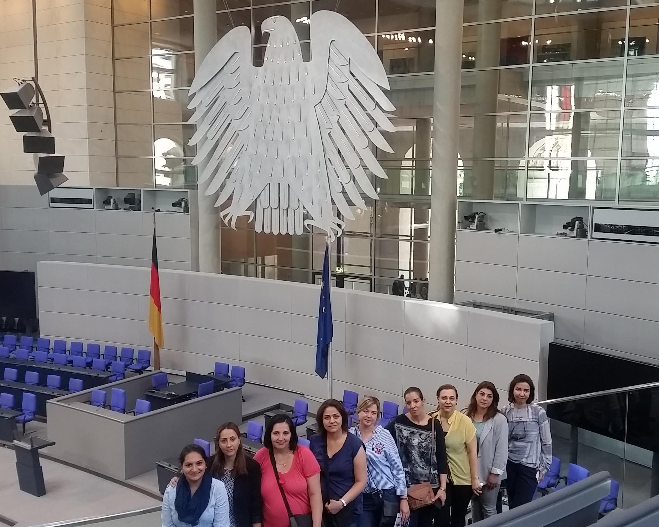 Im Anschluss wurden die Teilnehmerinnen durch eine Referentin durch den Bundestag geführt und ihnen nicht nur historische Informationen zur Architektur und Geschichte des Reichstags, sondern auch heutige Funktionen und Aufgaben des Deutschen Bundestags näher gebracht.