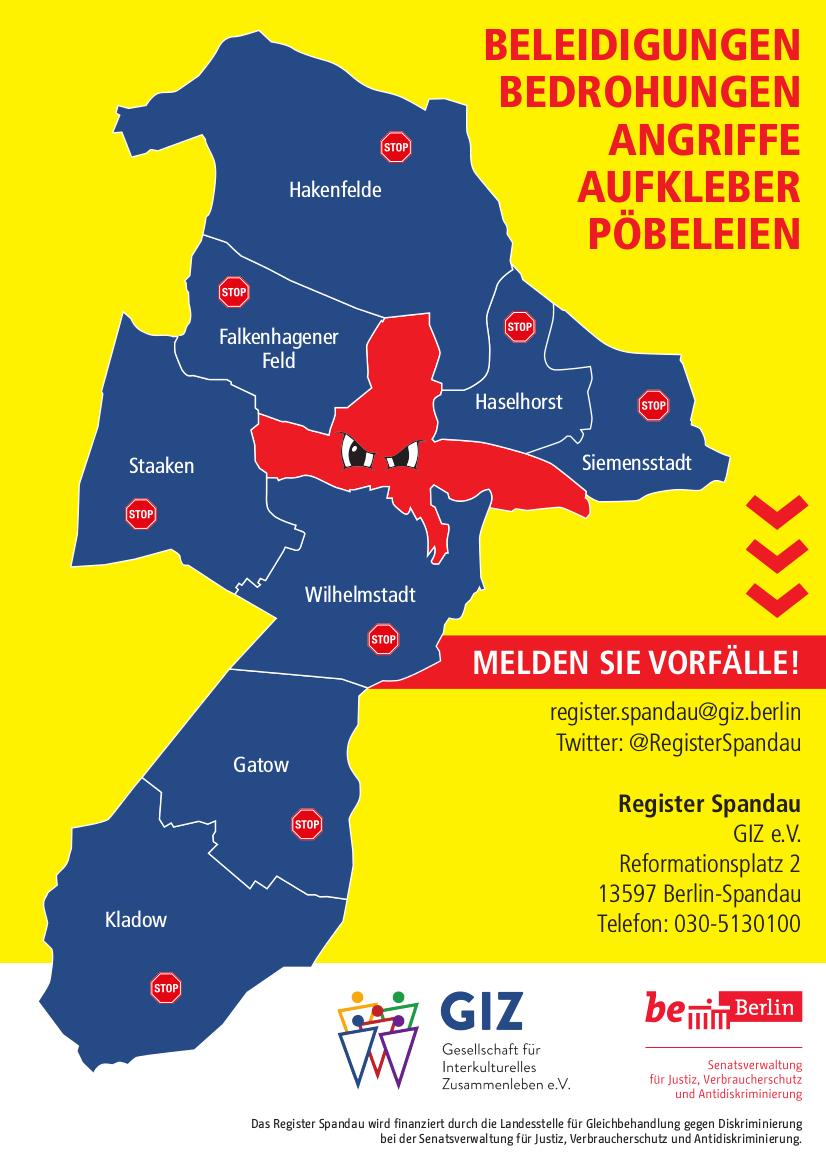 Das Register Spandau wird finanziert durch die Landesstelle für Gleichbehandlung gegen Diskriminierung bei der Senatsverwaltung für Justiz, Verbraucherschutz und Antidiskriminierung.