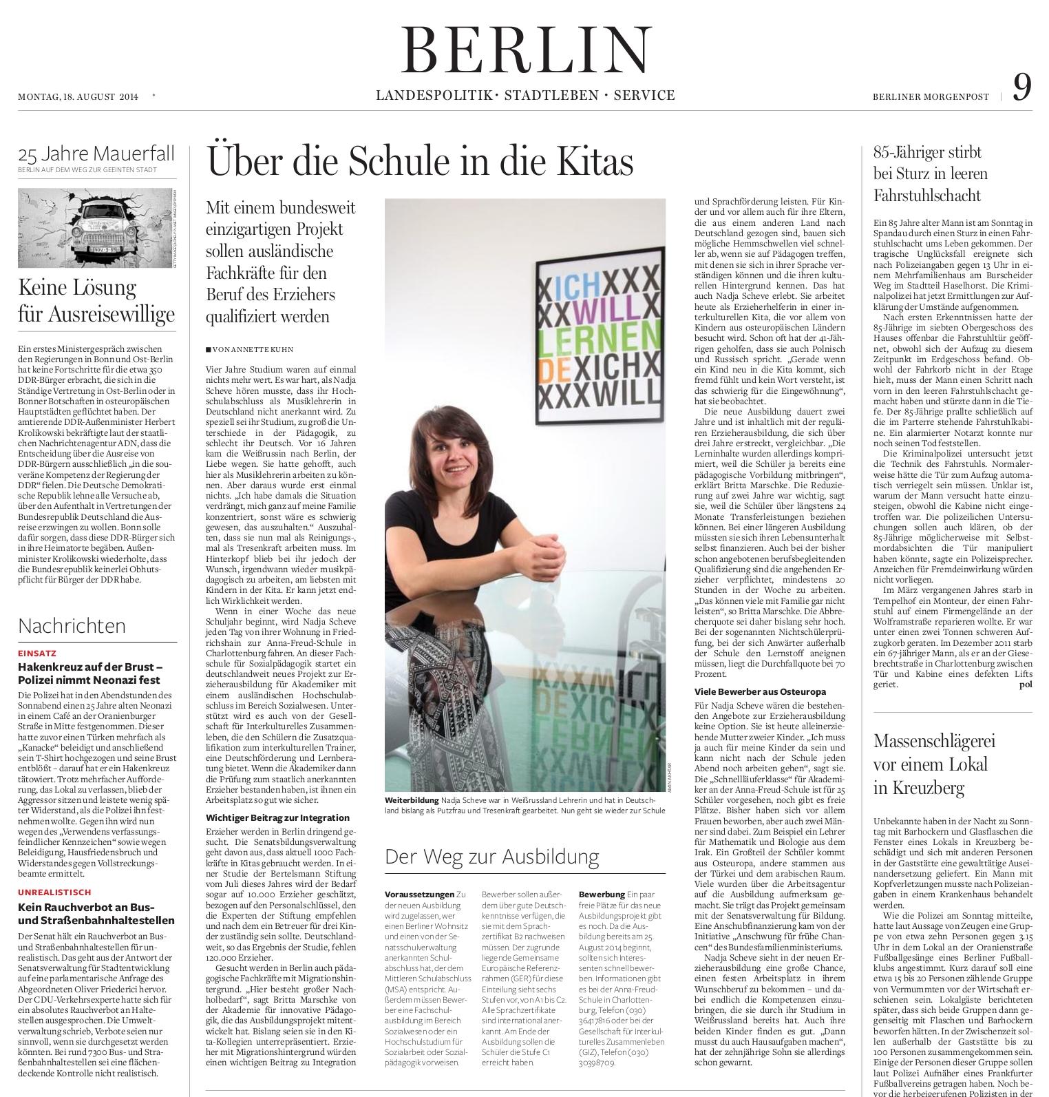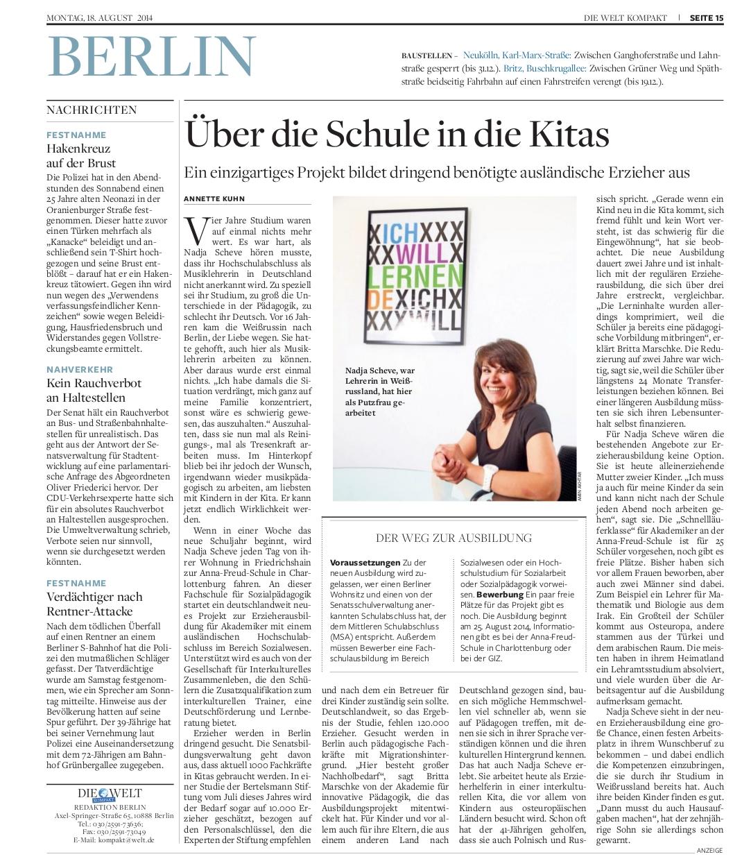 Falls Sie solche Personen kennen bzw. sich selbst für geeignet halten, bitten wir Sie uns eine Bewerbung mit einer kurzen Begründung, warum Sie dafür geeignet sind und Ihren Kontaktdaten (inklusive Telefonnummer) bis zum 10.08.2014 zukommen zu lassen. Die Auswahl trifft eine Kommission Mitte August. Danach werden wir die Termine mit den ausgewählten Teilnehmerinnen und Teilnehmern absprechen.