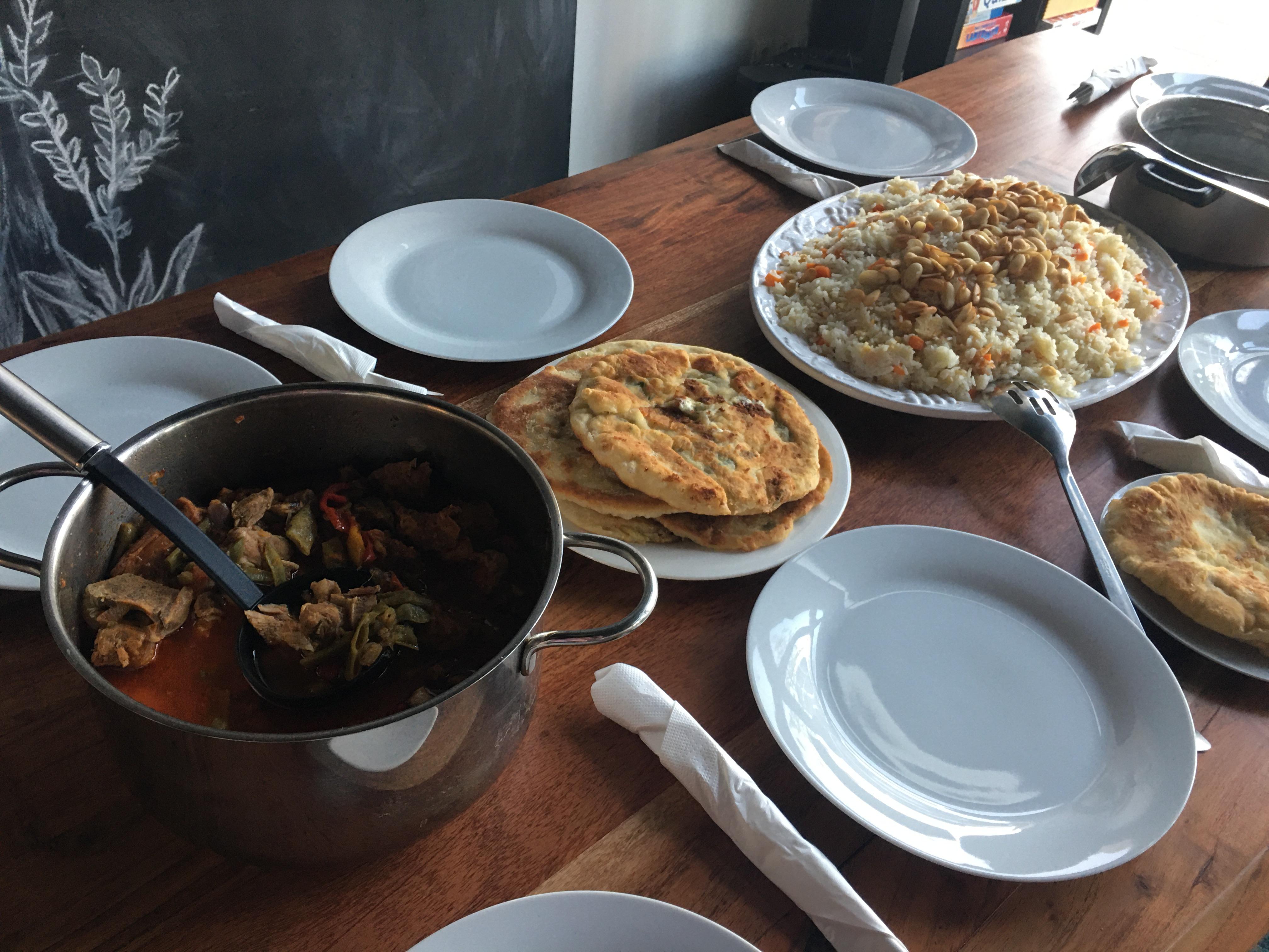 Die Kochabendreihe bei „heimaten bei berlinovo“ ging am 28.09.2023 weiter. Diesmal haben sich kurdische Frauen aus der Nachbarschaft versammelt, um gemeinsam zu kochen und, wie sie es selbst nannten, „das perfekte Dinner“ zubereitet. Unter anderem wurde birinca bnok, ein kurdisches Reisgericht mit Kichererbsen, Karotten und Mandeln, serviert. Wir sind sehr dankbar, immer wieder ein Stück verschiedener Heimaten kulinarisch entdecken zu dürfen und freuen uns auf Ideen unserer Besucherinnen und Besucher.
