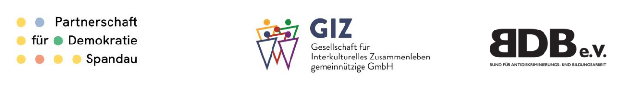Die internationalen Wochen gegen Rassismus in Spandau werden dieses Jahr erneut mit vielfältigen Aktionen gefeiert. Die Partnerschaft für Demokratie Spandau http://https://www.berlin.de/ba-spandau/politik-und-verwaltung/artikel.667015.php in Kooperation mit dem Register Spandau (GIZ gGmbH) und dem Bund für Antidiskriminierungs- und Bildungsarbeit [url]http://www.bdb-germany.de/url]) veranstalteten am am 22. März einen Workshop im Lerncafe Spandau. Das Thema des Workshops war ,,Rassismuskritisch Arbeiten – Rassismus am Arbeitsplatz’‘.
