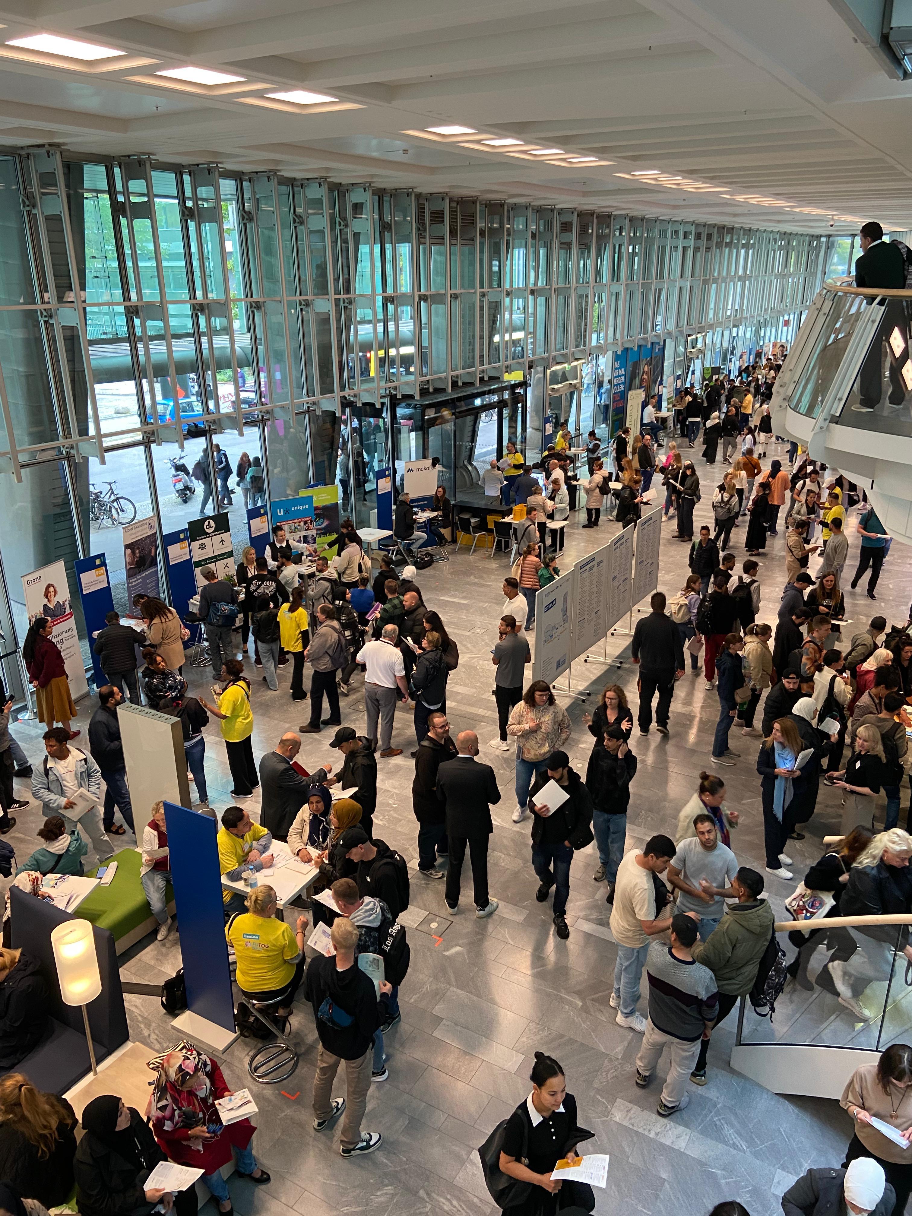 Am 18. September 2025 besuchte Projekt "Work for Refugees" die Jobmesse FuTog Berlin – Zukunft gemeinsam gestalten im Ludwig Erhard Haus der IHK Berlin. Die Messe richtet sich speziell an Menschen mit Fluchterfahrung und bringt sie mit Berliner Unternehmen, der Handwerkskammer Berlin sowie den zwölf Berliner Jobcentern zusammen. Ziel ist es, direkte Kontakte für Ausbildung, Orientierung und Beschäftigungsmöglichkeiten zu schaffen.