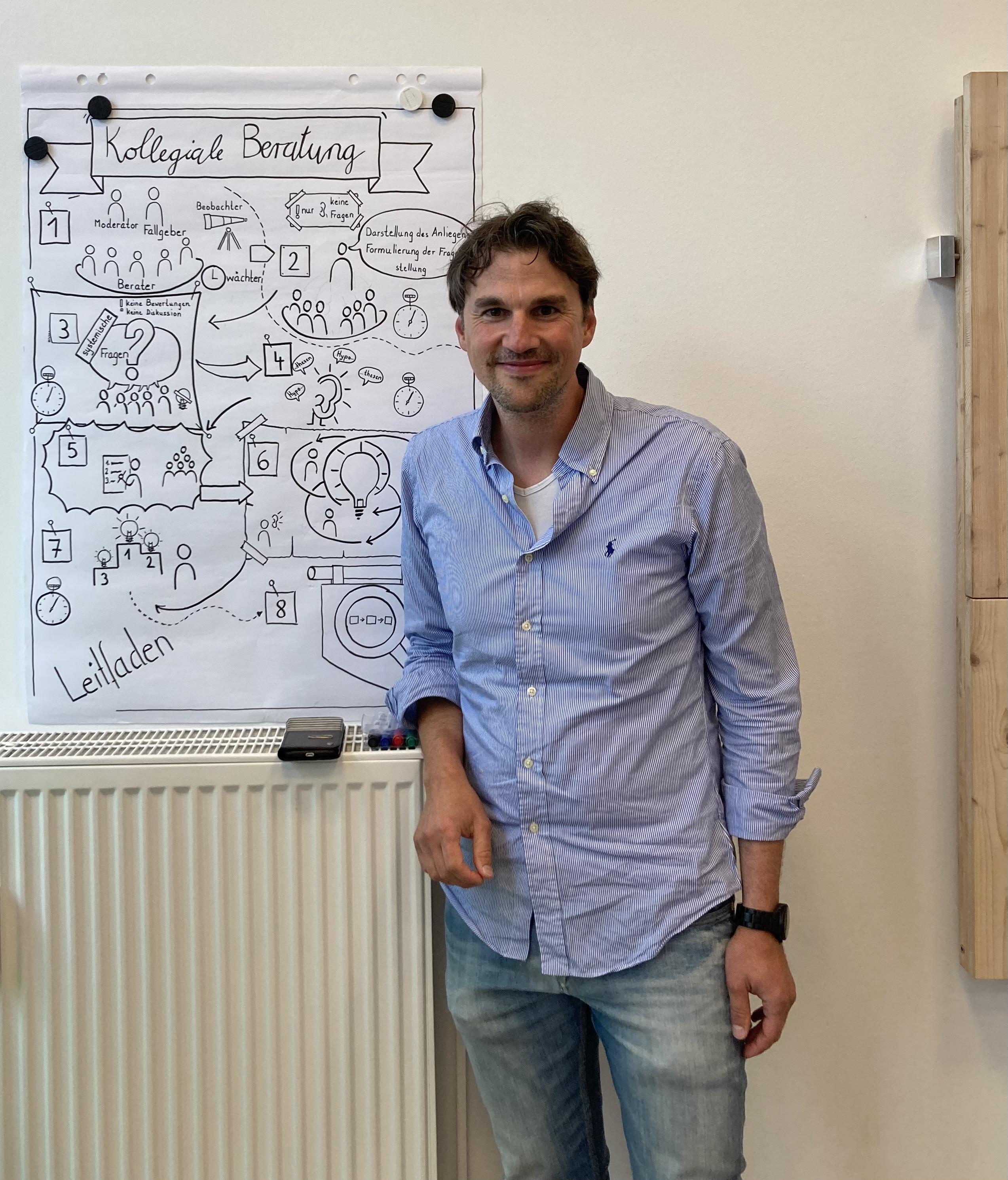 Nach einem kurzen Input durch das Projektteam, gestaltete Christian Dressel (BEP-Moderator und Lehrer an einer Berliner Gemeinschaftsschule) einen tollen und sehr praxisnahen Workshop zum Thema „Flipchart- und Sketchnote-Design“ mit kreativen Übungen – ein sehr schöner Einstieg für die ersten Schritte in diesem Bereich.