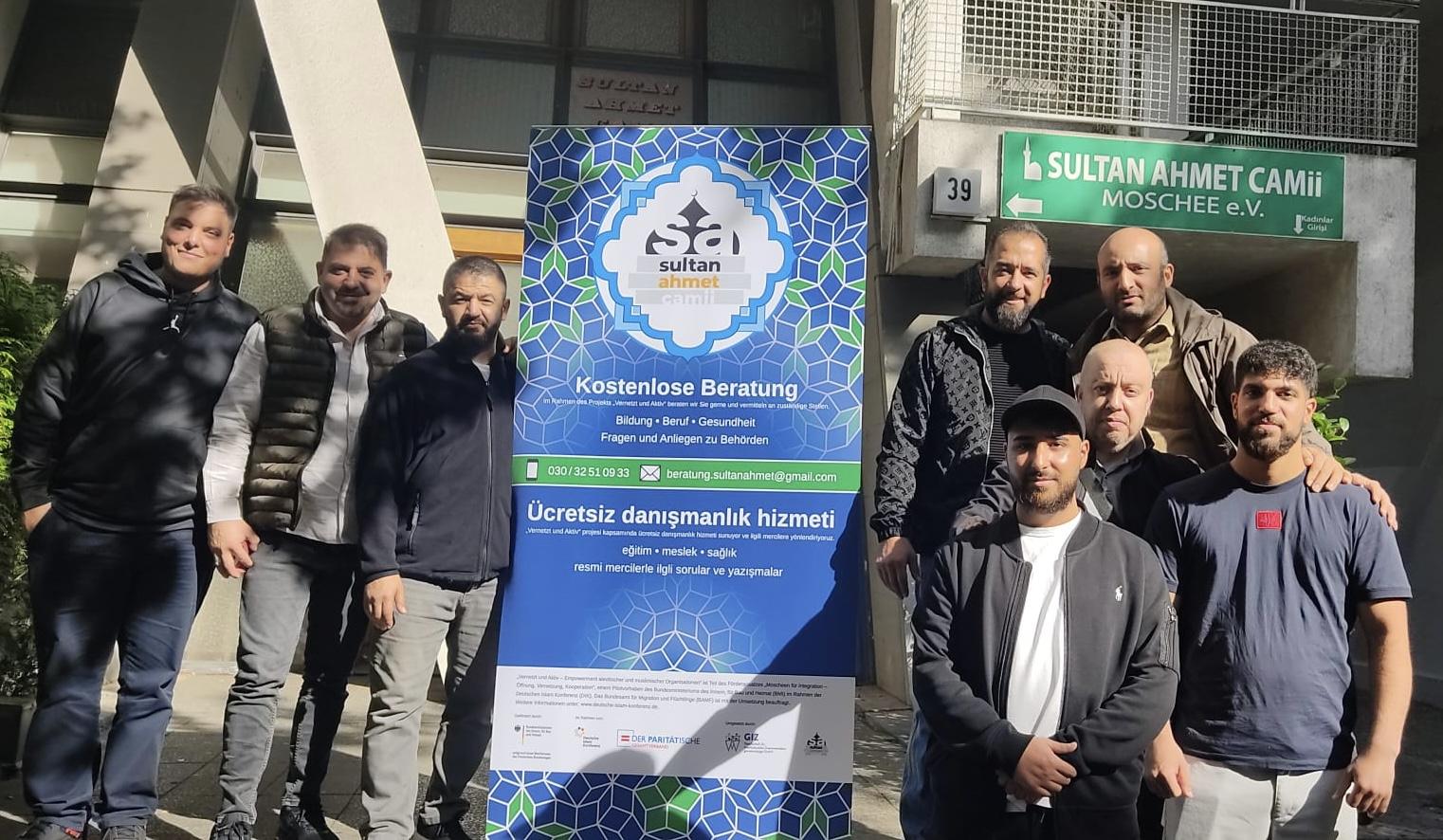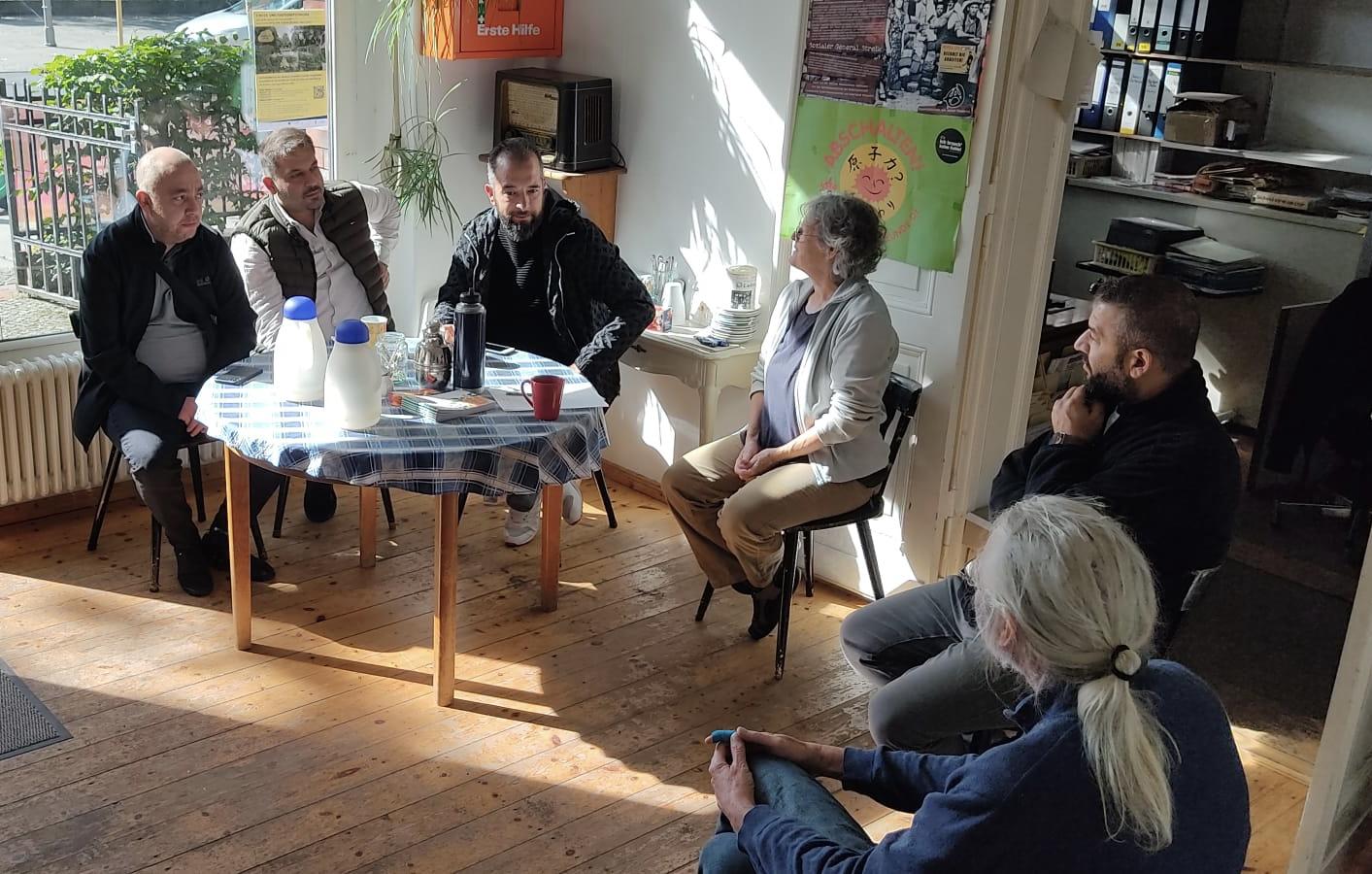 Die Sultan Ahmet Moschee hat im Rahmen des Projekts „Vernetzt&Aktiv" verschiedene Akteure im Kiez besucht und bereits geknüpfte Vernetzungen weiter vertieft. Projektmitarbeiter Ali Istanbul sowie die Männergruppe der Moscheegemeinde starteten ihre Tour in der Lehrterstraße und arbeiteten sich Stück für Stück durch den Moabiter Kiez. Den Schlusspunkt markierte der Besuch des B-Ladens. Der B-Laden bietet der dortigen Nachbarschaft die Möglichkeit, sich verschiedenen Themen rund um den Kiez zu widmen. Dabei liegt das Hauptaugenmerk auf den Themen soziale Sicherheit, Problemlösungen für das Wohnquartier sowie eine sozial ausgewogene Stadtplanung. Bei Kaffee und Kuchen folgte ein informativer Austausch zwischen den beiden Akteuren im Kiez, im Rahmen dessen sich vielerlei Schnittmengen ergaben.