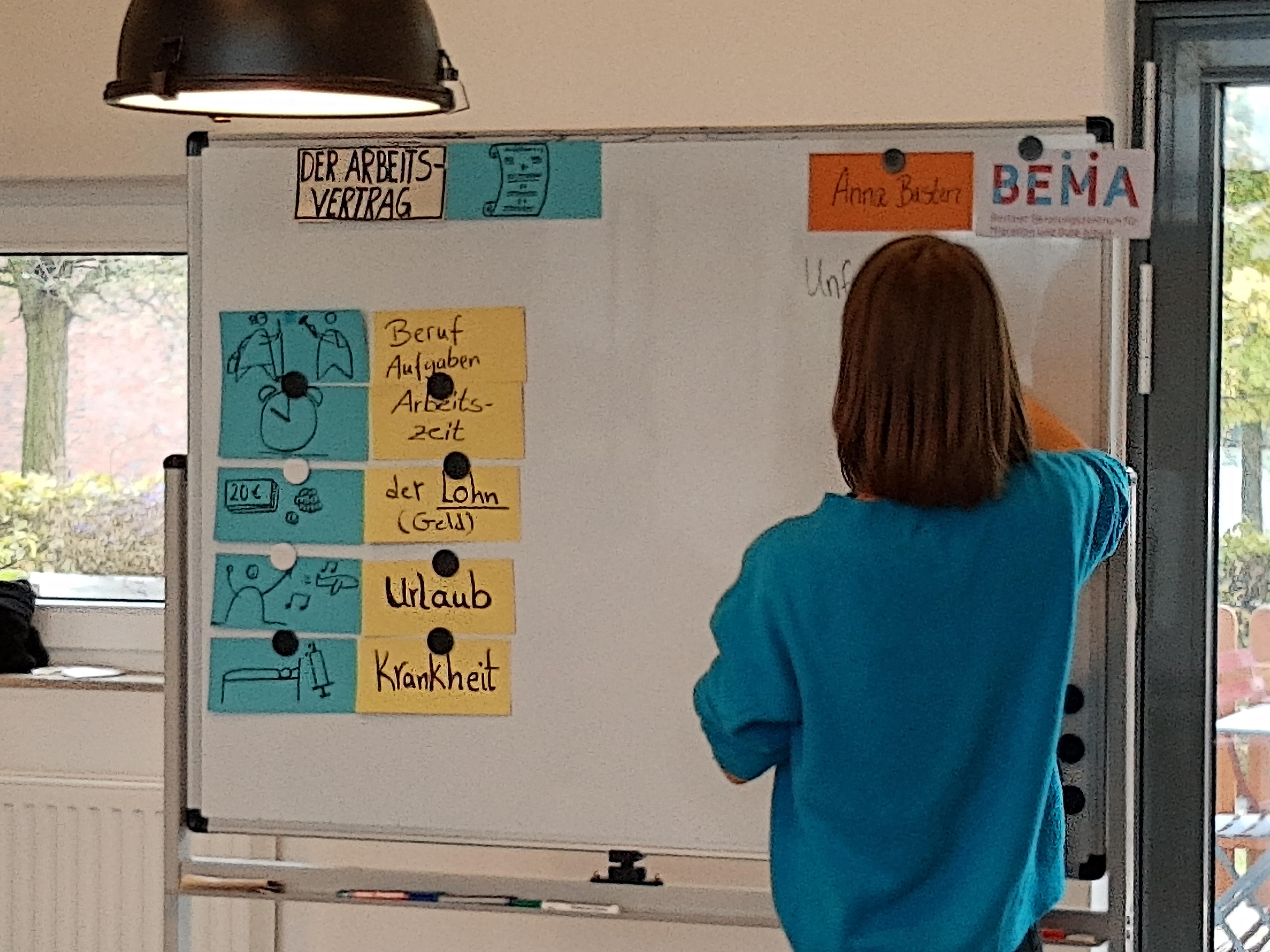 Am 27.10.2021 von 14:30-17:30 h fand die Infoveranstaltung „Meine Rechte bei der Arbeit“ in Kooperation mit dem Berliner Beratungszentrum für Migration und gute Arbeit (BEMA) statt. Die Veranstaltung wurde durch die Referentin Anna Basten (BEMA) auf Deutsch aufgeführt und durch die Dolmetscherinnen des WiA-Büros ins Arabische und Farsi übersetzt. Sieben Teilnehmer*innen haben die Chance erhalten, sich u.a. zu den Themen „Regeln bei der Arbeit“, „Arbeitsvertrag“, „Urlaubsanspruch“, „Arbeitsunfähigkeit“ und „Minijob“ zu informieren. Zum Anschluss gab es eine offene Fragerunde, um persönliche Fragen und Anliegen klären zu können.