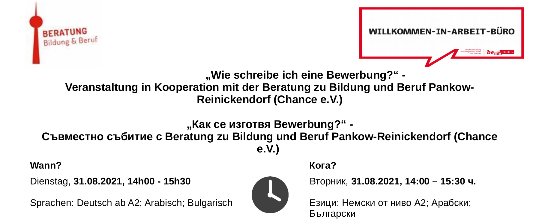 Infoveranstaltung „Wie schreibe ich eine Bewerbung?" am 31.08.2021 mit Chance e.V.