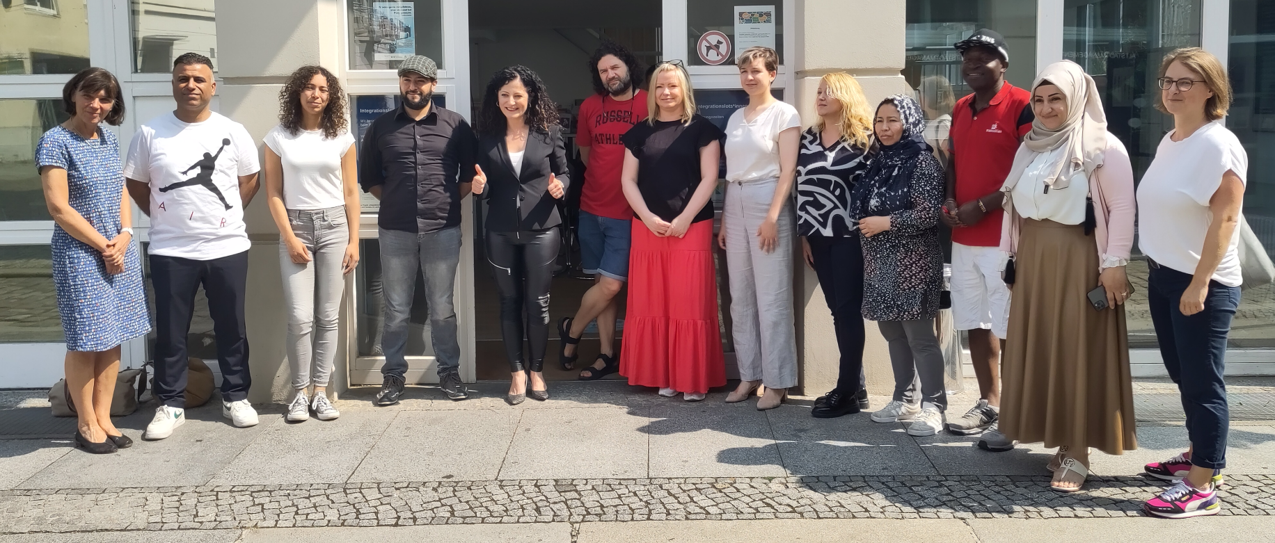 Bei einem kurzen Besuch bei den Spandauer Integrationslots*innen dankte die Senatorin den Integrationslots*innen vor Ort für das Engagement und die wichtige Arbeit. Begleitet wurde sie von Lena Werner aus dem Büro der Beauftragten des Senats von Berlin für Integration und Migration. Im Anschluss konnten das Willkommen-in-Arbeit-Büro, die Registerstelle Spandau, das über den Integrationsfonds geförderte Projekt "Gemeinsam unter einem Dach" und die Migrationsberatung für Erwachsene (MBE) eindrücklich die Verzahnung und die Zusammenarbeit untereinander vorstellen. Deutlich wurde die Relevanz, dass die wichtige Arbeit vor Ort im gleichen Umfang fortgesetzt werden muss. Der Bezirk Spandau hat momentan über 252.000 Einwohner*innen. Auch viele Migrant*innen und Geflüchtete leben in Spandau. Wir benötigen für die wichtige Integrationsarbeit dringend Fördermittel.