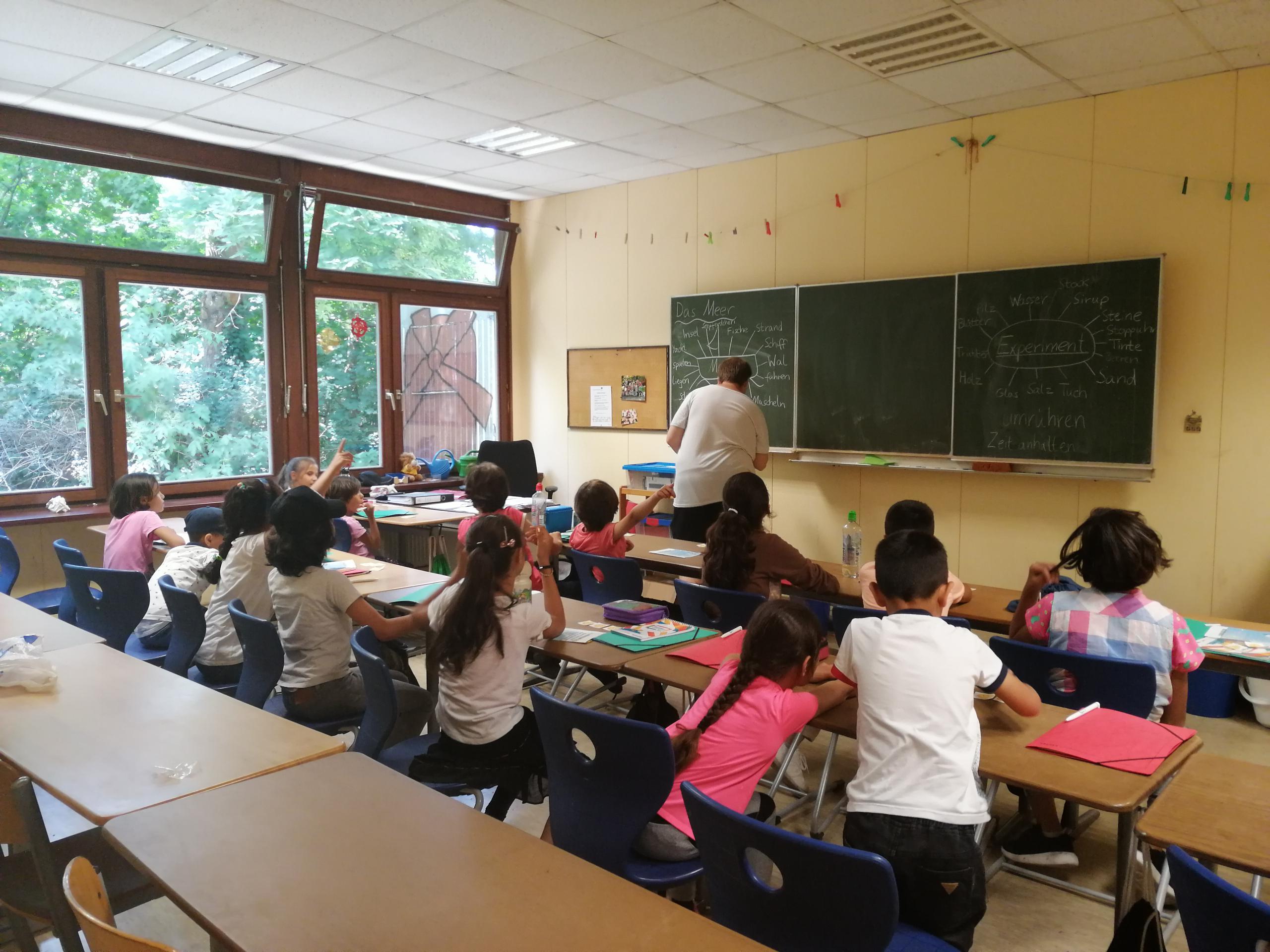 Die Sommerferienschule fand dieses Jahr in der Grundschule am Windmühlenberg statt, in der zwei Lerngruppen mit Teilnehmenden im Alter zwischen 6 und 14 Jahren von einer DaZ-Fachkraft und unseren pädagogischen Assistent*innen unterrichtet und begleitet wurden.