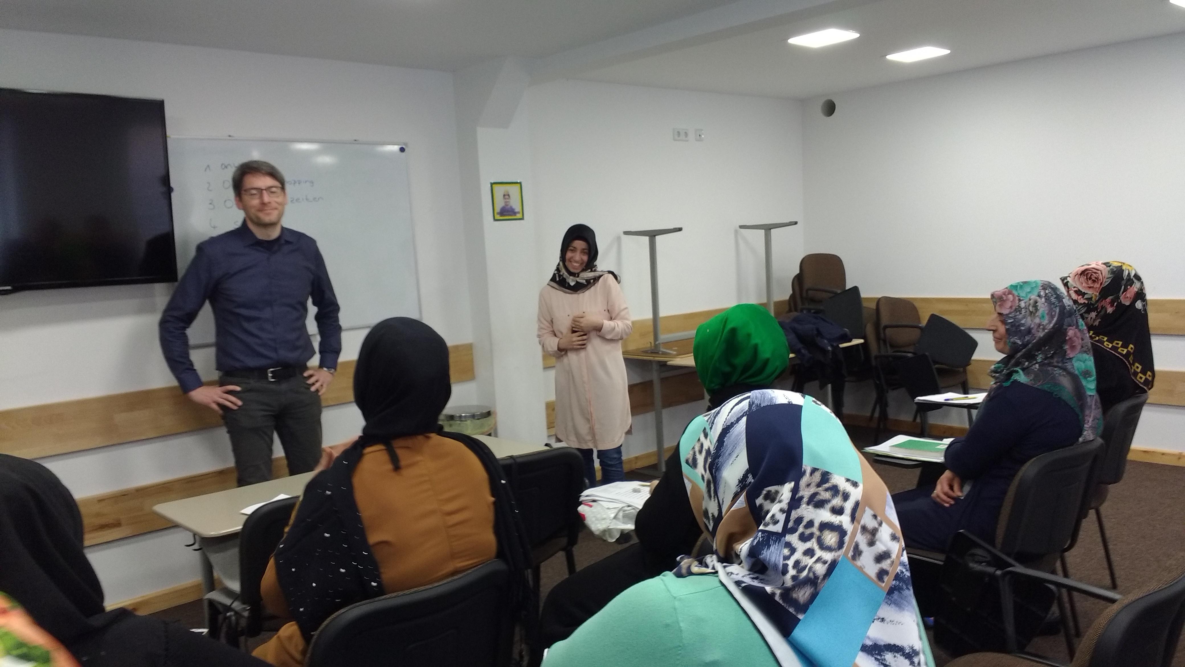 Am 19.04.2017 besuchte Swen Schulz, MdB und Beiratsmitglied des Projektes ABCami, unseren deutsch-türkischen Alpha-Kurs in der Islamischen Gemeinde Spandau. Nachdem sich Swen Schulz ein detailliertes Bild vom Unterrichtsgeschehen machen konnte, berichteten die Lernenden von ihren zahlreichen Unterrichtserfahrungen und ihrer Motivation, an einem ABCami-Alphabetisierungskurs teilzunehmen. Die Lernenden teilten mit, dass sie durch das Erlernen der deutschen Sprache und Schriftsprache, ihre Selbständigkeit erlangen möchten und daher die Kursteilnahme als sehr wichtig erachten. Im anschließenden Austausch mit dem Vorstandsmitglied der Moschee, Suat Aydın, sicherte Swen Schulz zu, das Projekt auch in Zukunft zu unterstützen. Wir danken Swen Schulz an dieser Stelle für seine große Unterstützung und seinen Besuch.