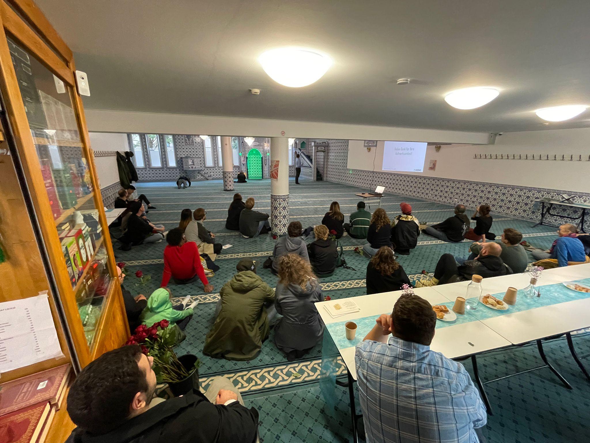 Im Rahmen des Projekts „Vernetzt&Aktiv“ fanden anlässlich des 3. Oktober in zwei Moscheegemeinden Aktionen statt. So bot das Fatih Kulturhaus im Bezirk Friedrichsain-Kreuzberg Interessiert*innen einen Tag der offenen Tür an. Besucher*innen aus aller Welt nutzten die Gelegenheit, um die Moschee am Schlesischem Tor näher kennenzulernen. Insgesamt 260 Besucher*innen zählte die Moschee am Ende eines langen, jedoch für alle höchst informativen Tag der deutschen Einheit.