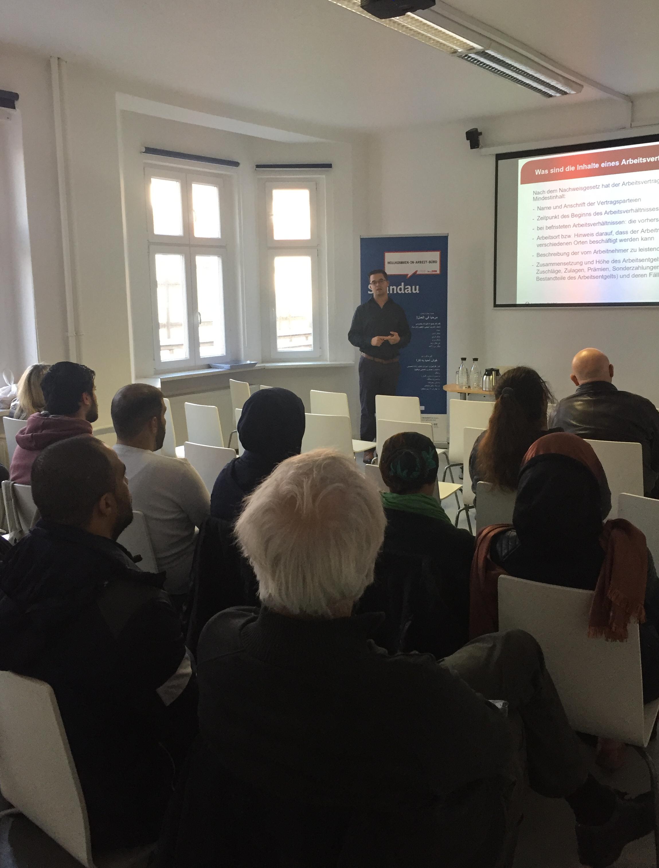 Durch die beiden Dolmetscher für Arabisch (Ibrahim Hassan) und Farsi (Hashmatullah Safi) konnten auch diejenigen Geflüchteten, die noch auf dem Weg hin zu fließenden Deutschkenntnissen sind, den gesamten Inhalt verstehen und ihre ganz persönlichen Fragen stellen. Dadurch wurde sichergestellt, dass die Veranstaltung für alle Teilnehmer von Nutzen war.