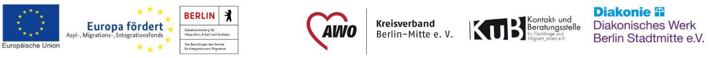 Das vollständige Programm und weitere Informationen zu der Fortbildungsreihe „Sprachmittler*innen stärken“ sind hier zu finden. Das Projekt wird mit Mitteln des Asyl-, Migrations- und Integrationsfonds der Europäischen Union sowie mit Mitteln des Landes Berlin kofinanziert.