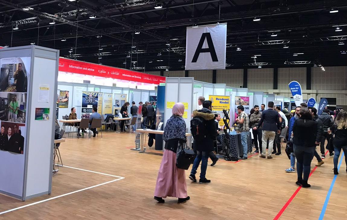 Am 20. Februar 2018 fand bereits zum dritten Mal die Jobbörse für Geflüchtete und Migranten im Estrel statt. Wie bereits in den Jahren zuvor war der Andrang auch dieses Mal sehr groß. Die 200 Aussteller reisten mit rund 3.000 offenen Stellen im Gepäck an. Auch das WiA-Büro Spandau war hier aktiv, um vor Ort mit den Unternehmen in Kontakt zu treten und wichtige Netzwerkarbeit zu betreiben und den Bekanntheitsgrad weiter auszubauen.